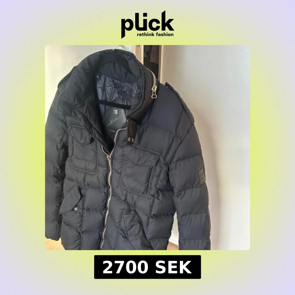 Marinblå jacka från det italienska lyxmärket Montecore. Sitter som S/M. Köptes i Italien för 9000kr. Använts lite men fortfarande i bra skick. Perfekt som vår/höst jacka.