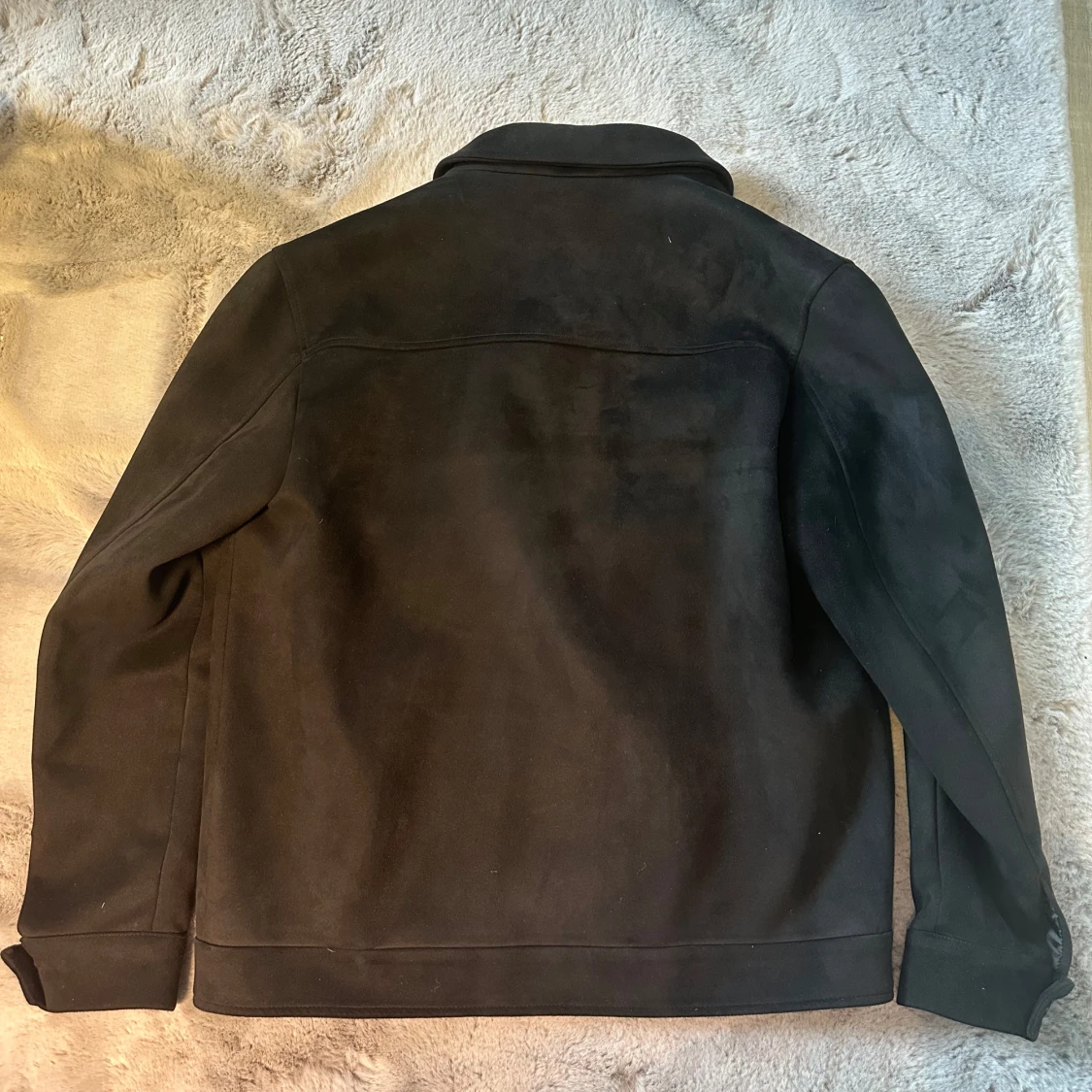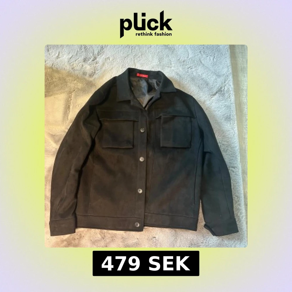 Säljer en stilren svart jacka med knappar framtill och två stora bröstfickor. Jackan har en klassisk krage och långa ärmar, perfekt för en cool och avslappnad look.