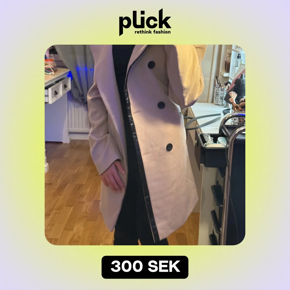 Säljer en snygg beige kappa i mycket bra skick. Den har en klassisk design med stora svarta knappar och en stilren passform. Perfekt för höst och vår, och funkar både till vardags och fest. Storleken är normal och kappan har långa ärmar. Ett måste i garderoben för den stilmedvetna!