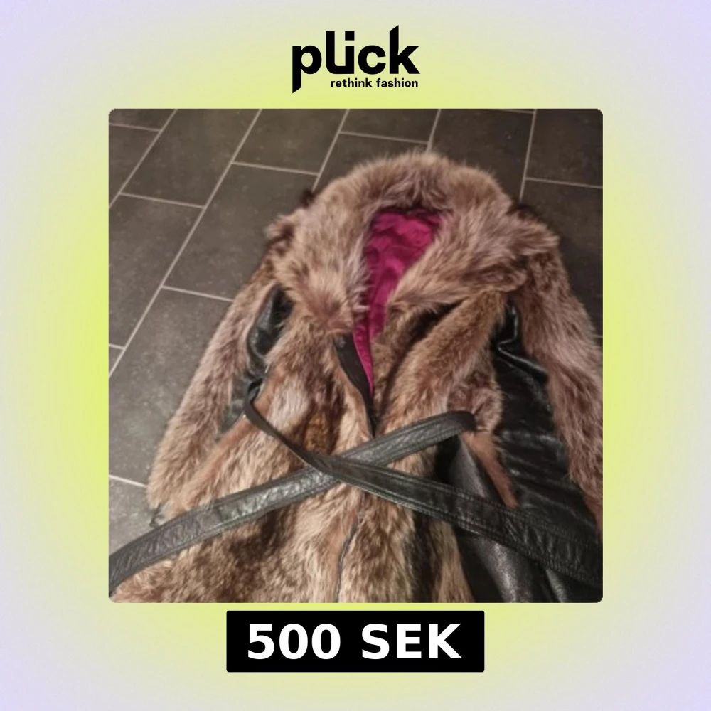 Brun pälsjacka med skinnpaneler