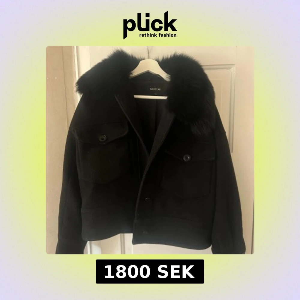 Snygg svart jacka från Meotine med en lyxig pälskrage. Jackan har knappar framtill och två fickor med lock. Materialet består av en blandning av ull och polyester, vilket gör den både varm och stilren. Lite nipprig på vissa ställen men inget man märker av! Köpt för 3500kr, säljer för 1800kr.