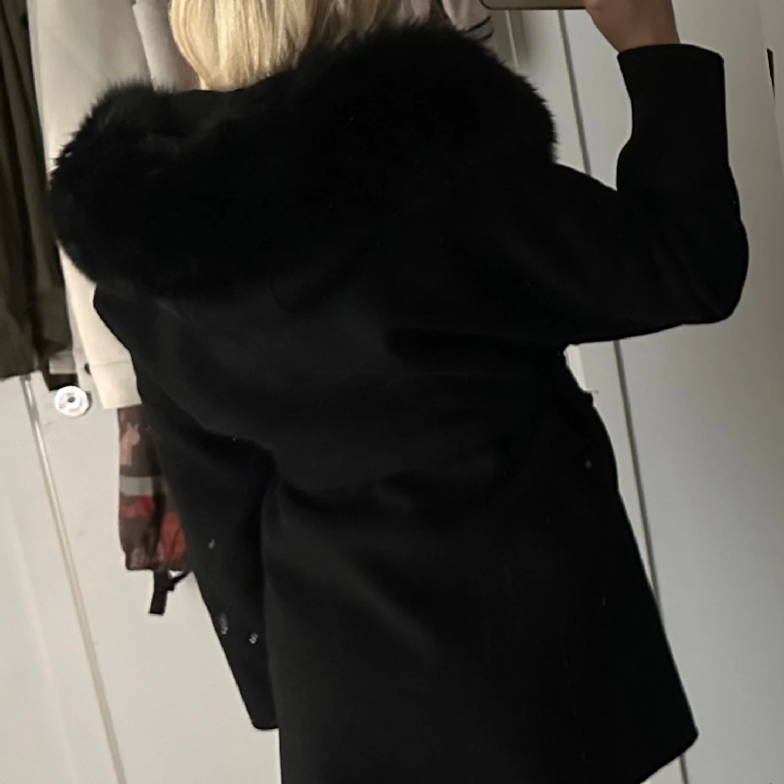 Säljer min jätte fina kappa från garoff med äkta päls. Den är använd under förra året 3-5 gånger. På sidan av kappan finns det egentligen en liten ögla där snöret ska sitta men de har lossnat. Ingenting man tänker på. Därför säljer jag den billigt.