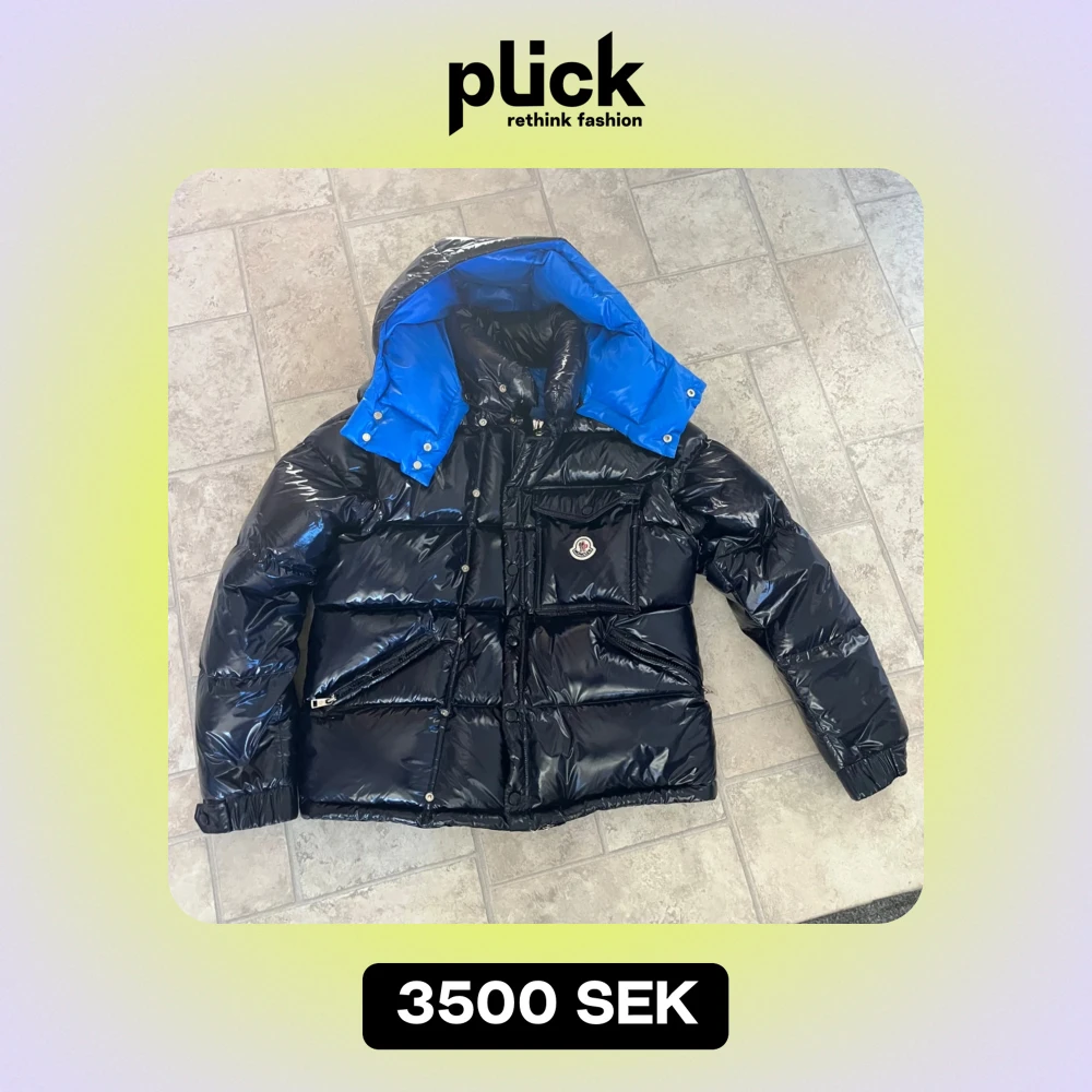 Inte äkta. Dustybag o väska följer med!!!!! Säljer en snygg och varm pufferjacka från Moncler i svart med blå insida. Jackan har avtagbara ärmar, vilket gör den superpraktisk för olika väder. Den har en huva och flera fickor med dragkedja. Perfekt för vintern och hösten! 🖤💙