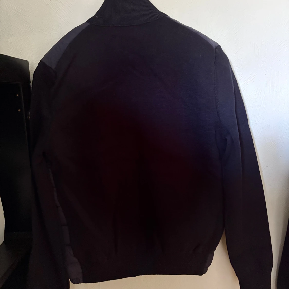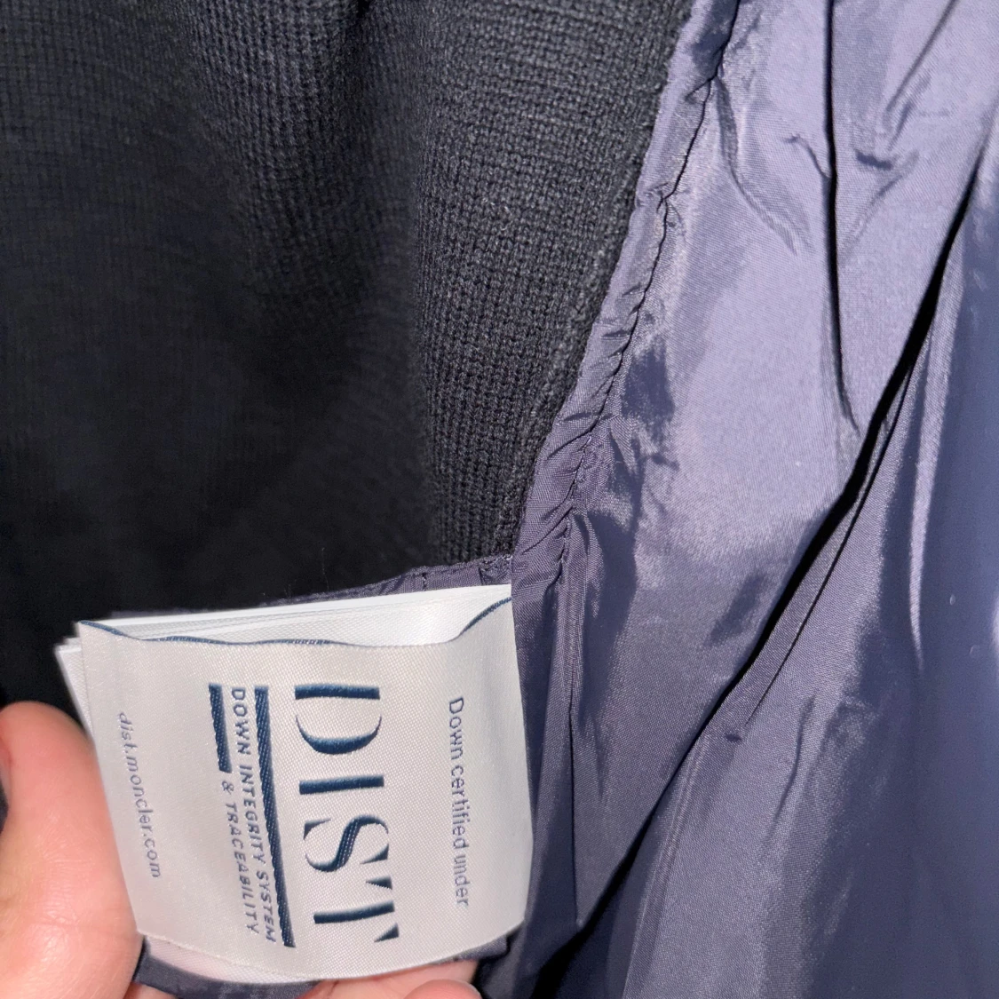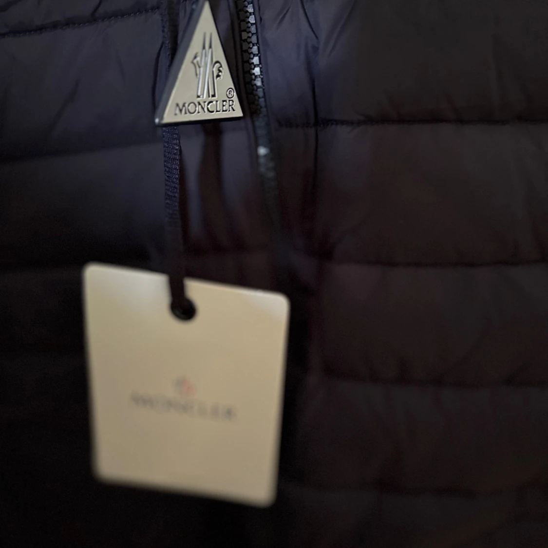 Snygg navy blue quiltad jacka från Moncler med ribbad krage och ärmar. Jackan har dragkedja framtill, två fickor med dragkedja och Moncler-logga på bröstet. Framsidan är lätt vadderad och ger en modern look. Perfekt för dig som vill ha något stilrent och exklusivt.