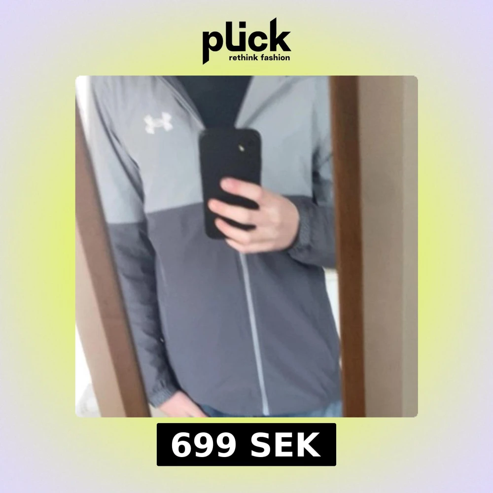 Snygg tvåfärgad grå vindjacka från Under Armour med dragkedja framtill och elastiska muddar vid ärmsluten. Jackan har en sportig look och är perfekt för blåsiga dagar. Loggan syns tydligt på bröstet och materialet känns lätt och smidigt. 9/10 skick!