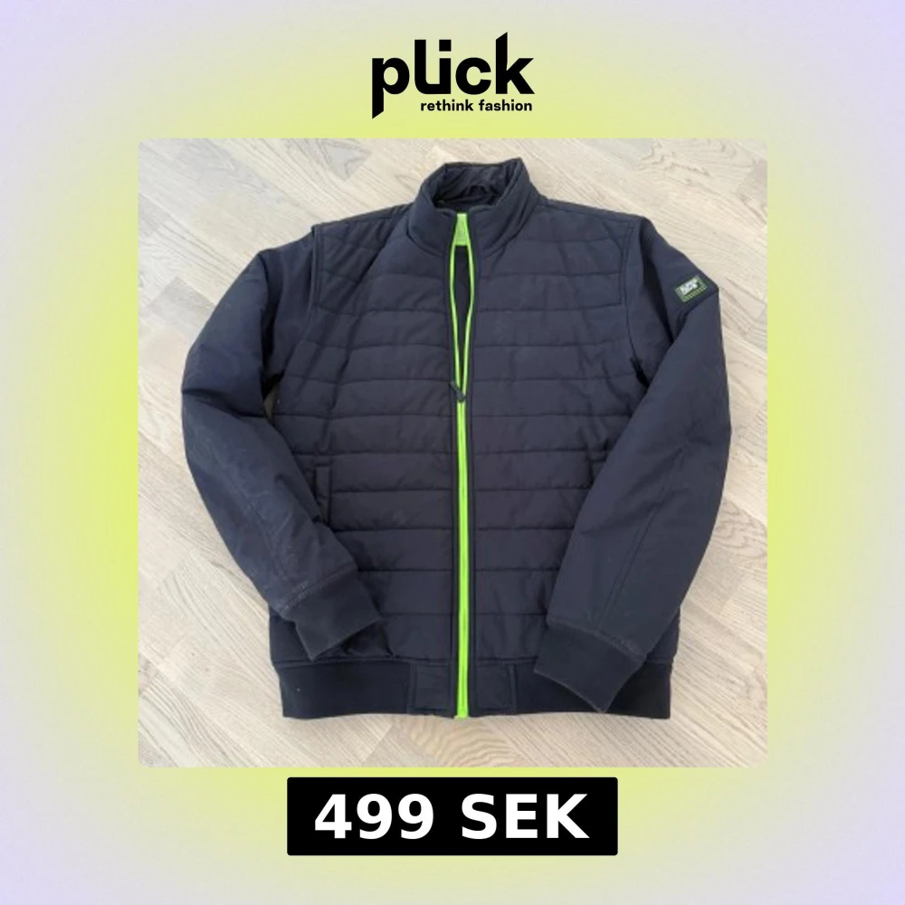 Svart pufferjacka från SuperDry med en snygg neongrön dragkedja framtill. Jackan har ståkrage, quiltad design och ribbade muddar vid ärmslut och nederkant. Perfekt för dig som vill ha en stilren jacka med en cool detalj. Nypris 1200kr, Storlek L men passar som S.
