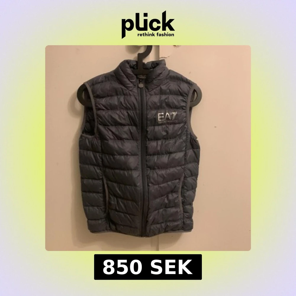 Snygg grå dunväst från Emporio Armani med dragkedja framtill. Västen har en quiltad design och märkeslogga på bröstet. Perfekt för lager-på-lager under kyligare dagar.