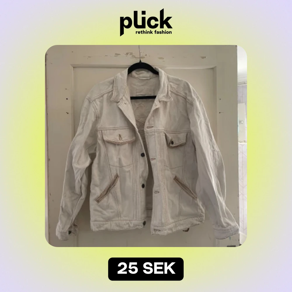Säljer en vintage vit jeansjacka från Warrick, tillverkad i Finland. Jackan har en klassisk design med knappar framtill och flera fickor. Den har en cool patch på ryggen med ett unikt mönster. Perfekt för vår och sommar!