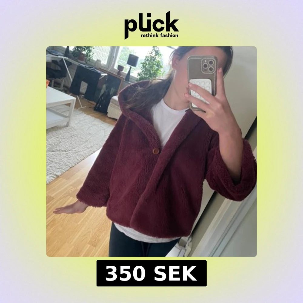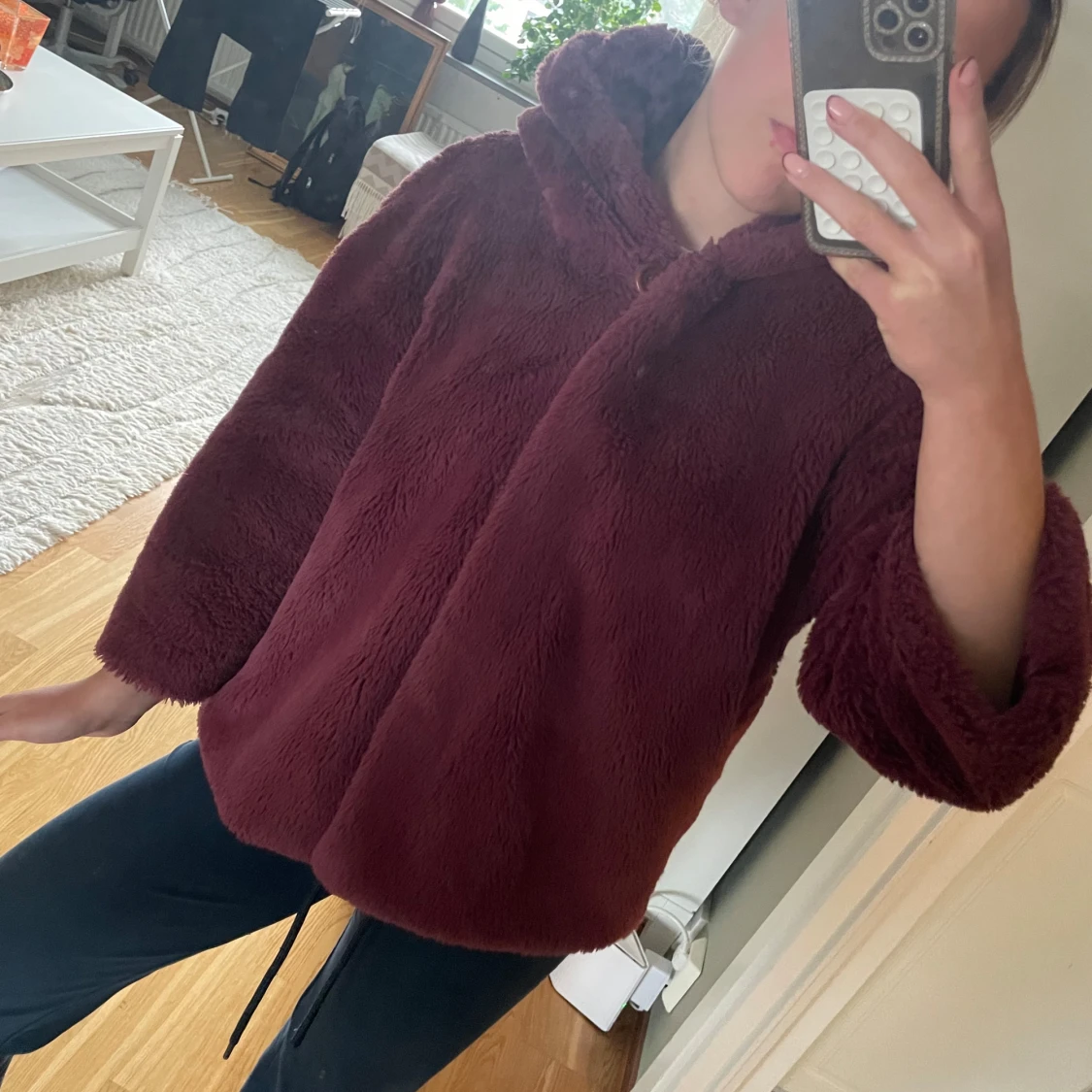 Mysig vinröd teddyjacka med trekvartsärm. Jackan har en loose passform och är tillverkad i fluffigt teddy-material som håller dig varm. Perfekt för dig som vill ha en chill och trendig look under kyliga dagar.