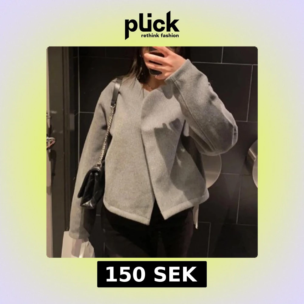Snygg grå jacka med omlottstängning och minimalistisk design. Jackan har lång ärm och är tillverkad i ett mjukt ull-liknande material. Perfekt för dig som gillar stilrena och enkla plagg med en modern touch.