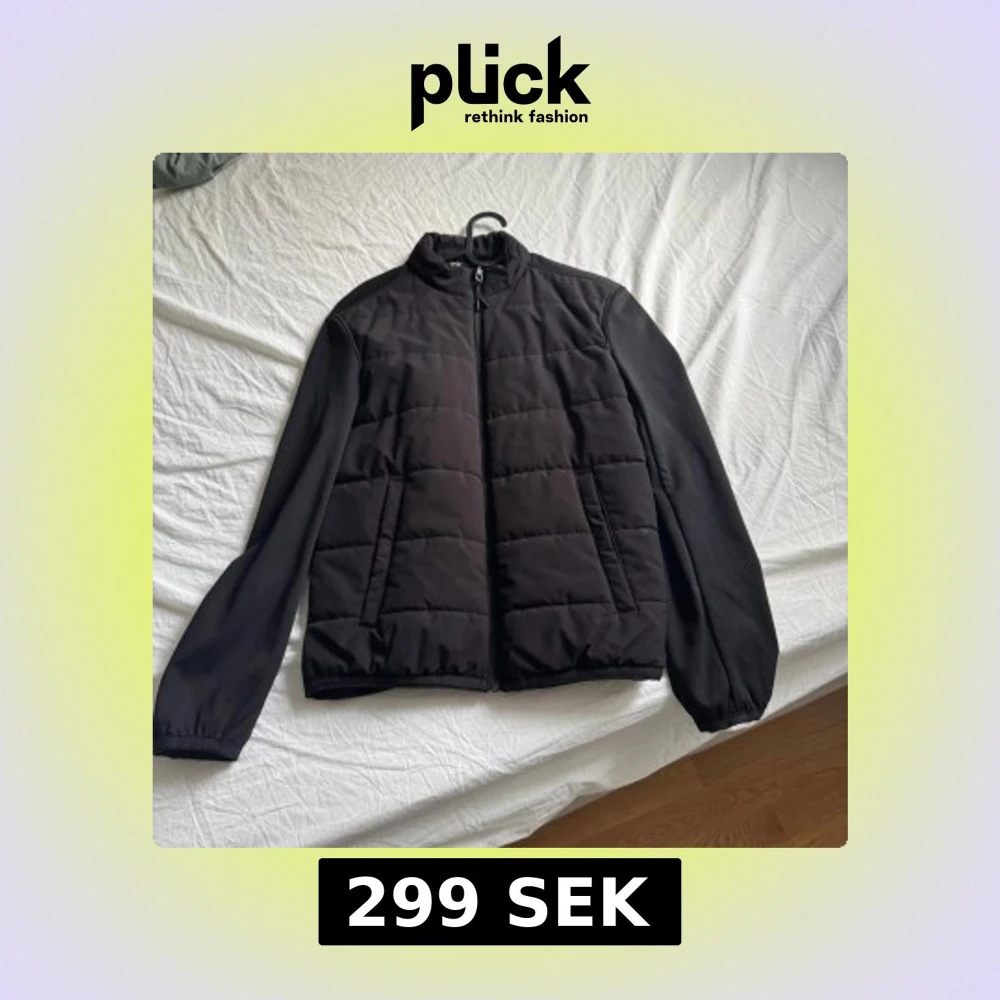 Stilren svart pufferjacka med quiltade paneler framtill och släta ärmar. Jackan har hög krage, hel dragkedja och två sidofickor. Perfekt för kyligare dagar och enkel att matcha med olika outfits.