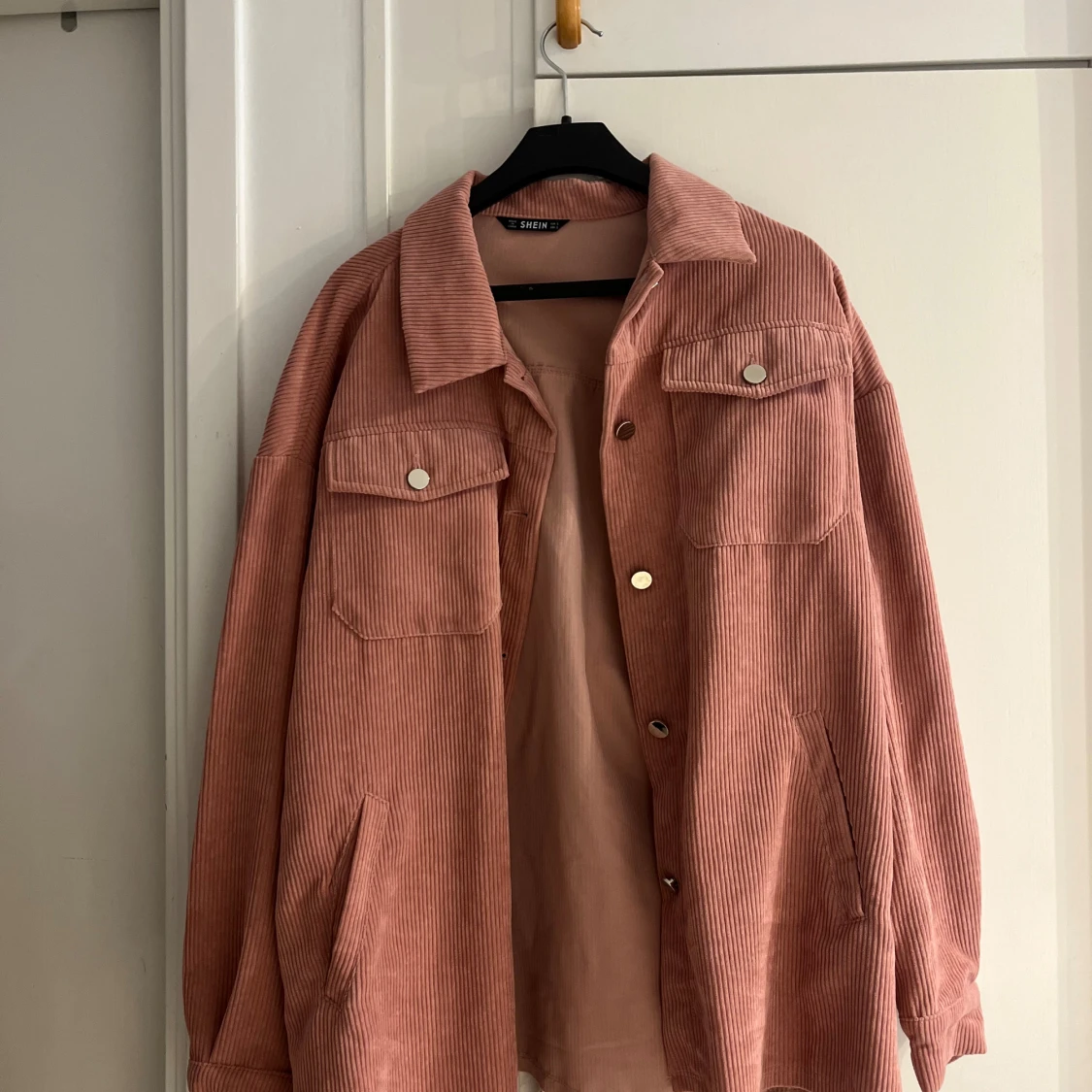 Snygg rosa manchesterjacka från SHEIN med oversized passform. Jackan har klassisk krage, två stora bröstfickor med knappar och sidofickor. Tydlig ribbad struktur och silvriga knappar framtill ger en cool och trendig look.