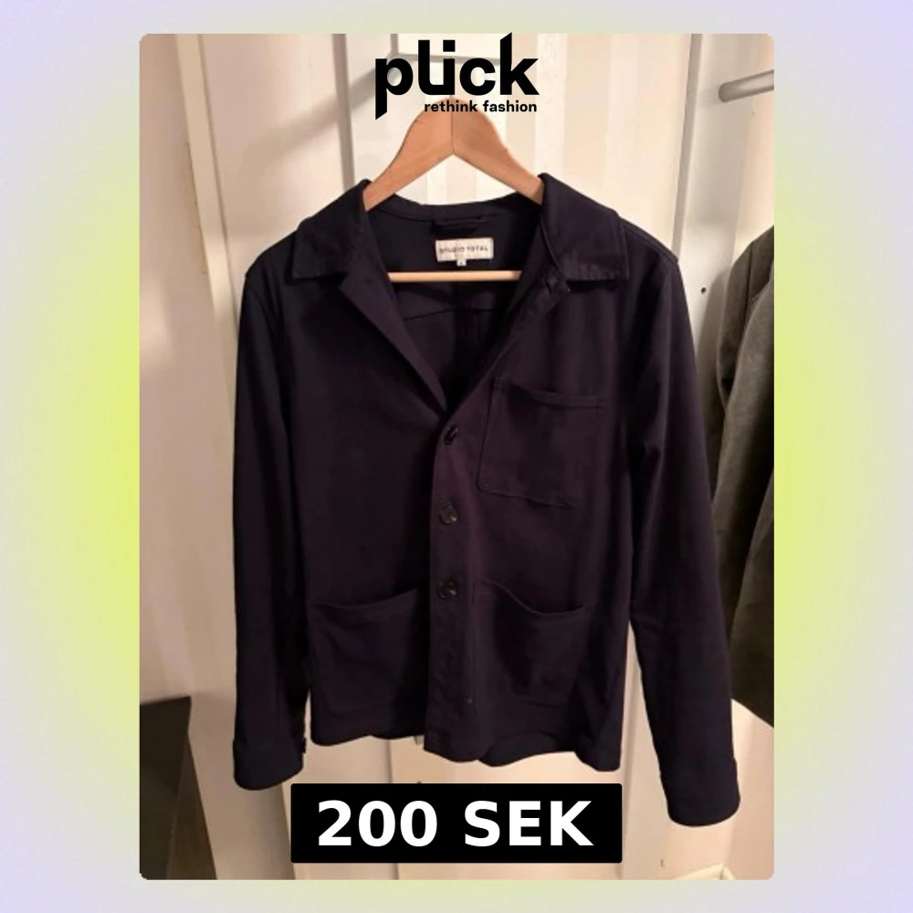 Snygg mörkblå overshirt från Studio Total med klassisk krage, sparsamt använd