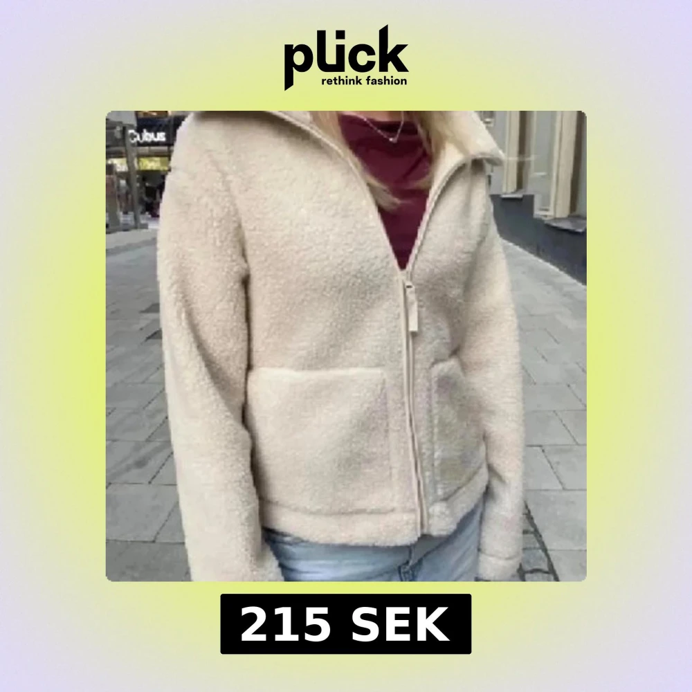 Mysig beige teddyjacka med hög krage och två stora fickor framtill. Jackan har en rak passform och stängs med dragkedja. Perfekt för att hålla värmen under kyliga dagar och ger en chill vibe till din outfit.