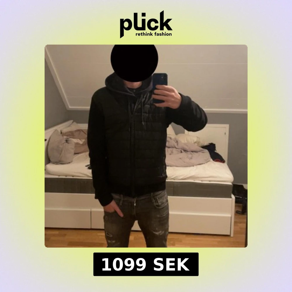 Svart bomberjacka från Barbour international med quiltad front i syntetmaterial och stickade ärmar och rygg. Jackan har dragkedja framtill, ribbade muddar och två fickor med dragkedja. Enkel och clean stil som passar perfekt till jeans. Nypris 2000 +, säljs inte längre ny.