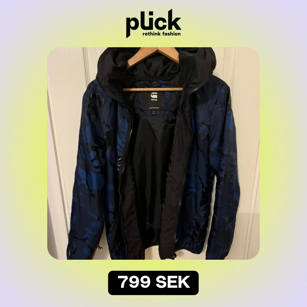 Säljer en snygg blå camo vindjacka från G-Star RAW. Jackan har en dragkedja framtill och en praktisk huva. Perfekt för höst och vår, med ett coolt mönster som sticker ut. Passar bra till både vardag och lättare utomhusaktiviteter.