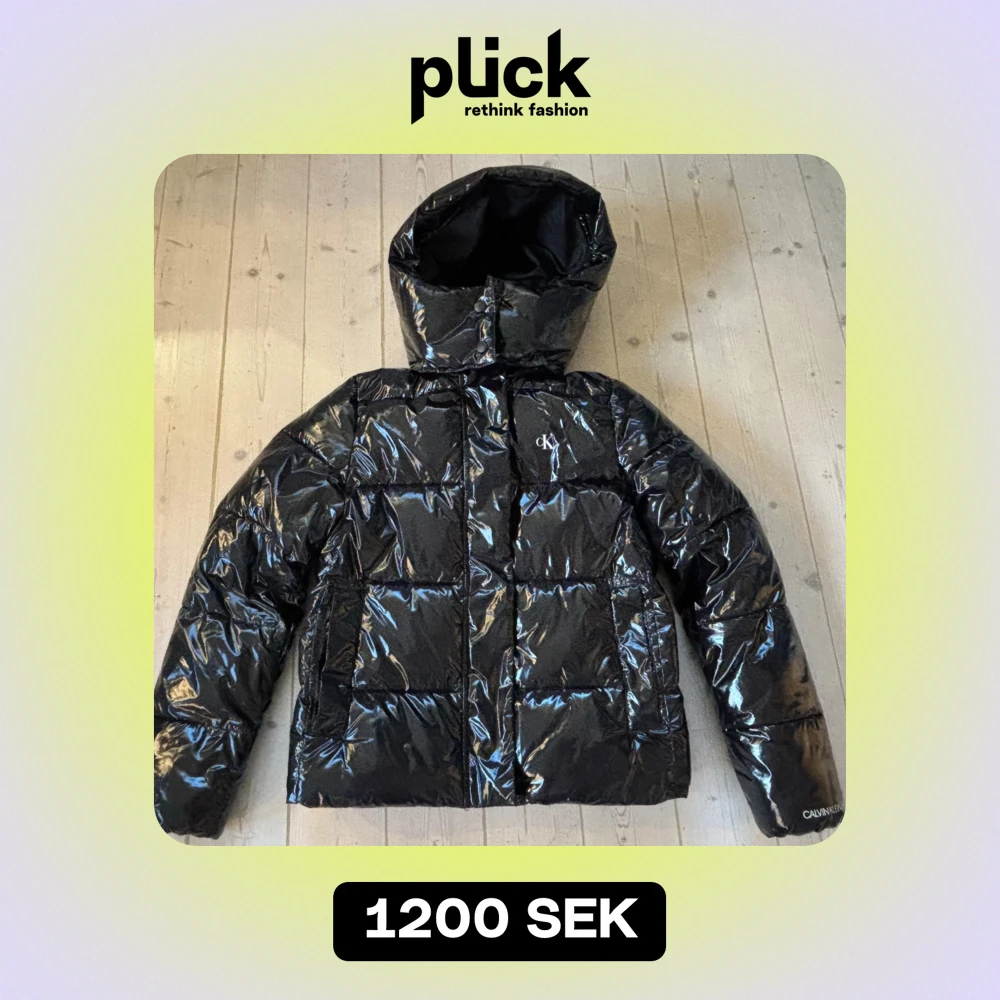 Säljer en snygg svart glansig pufferjacka från Calvin Klein Jeans i storlek S. Jackan är i mycket bra skick och har en glansig finish med dragkedja och huva. Liten i storleken.