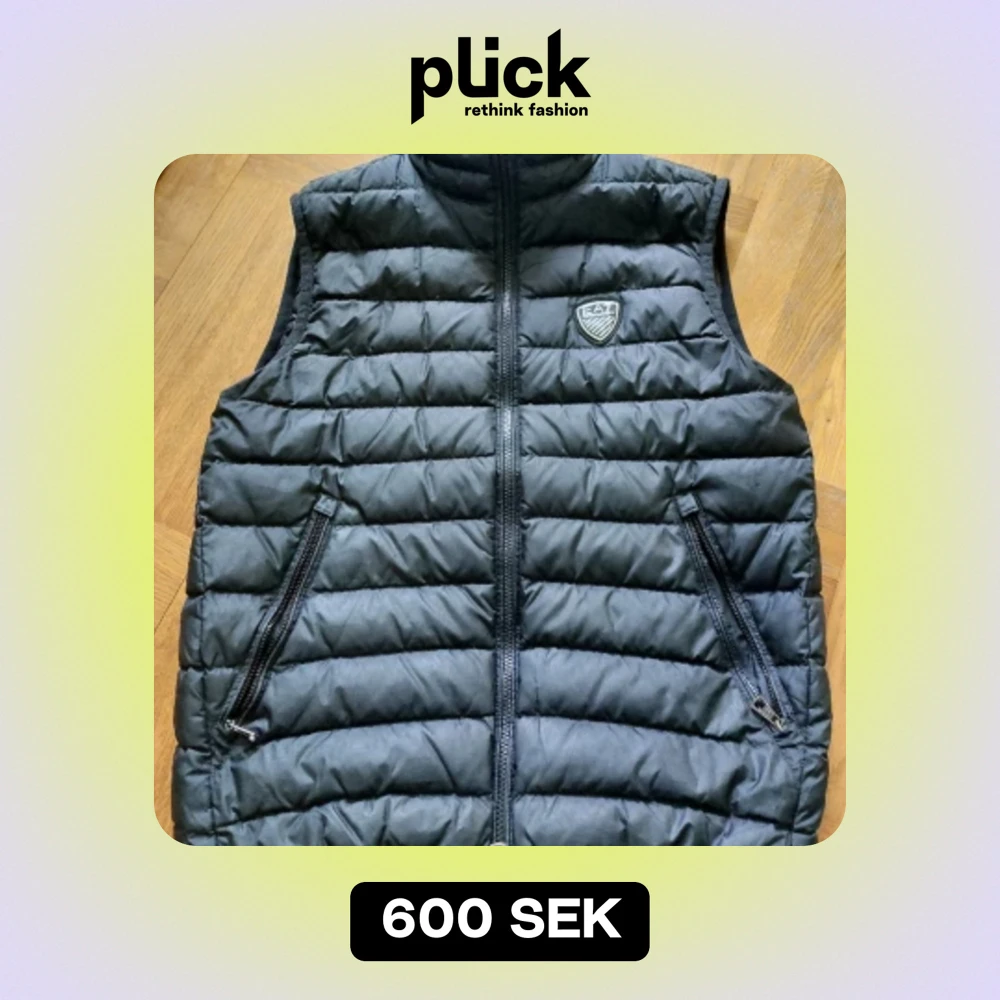 Svart lätt dunväst från Emporio Armani. En knappt synlig lite reva på ena sidan annars perfekt skick. Inköpt 2022, sparsamt använd. Nypris ca 1400 kr.