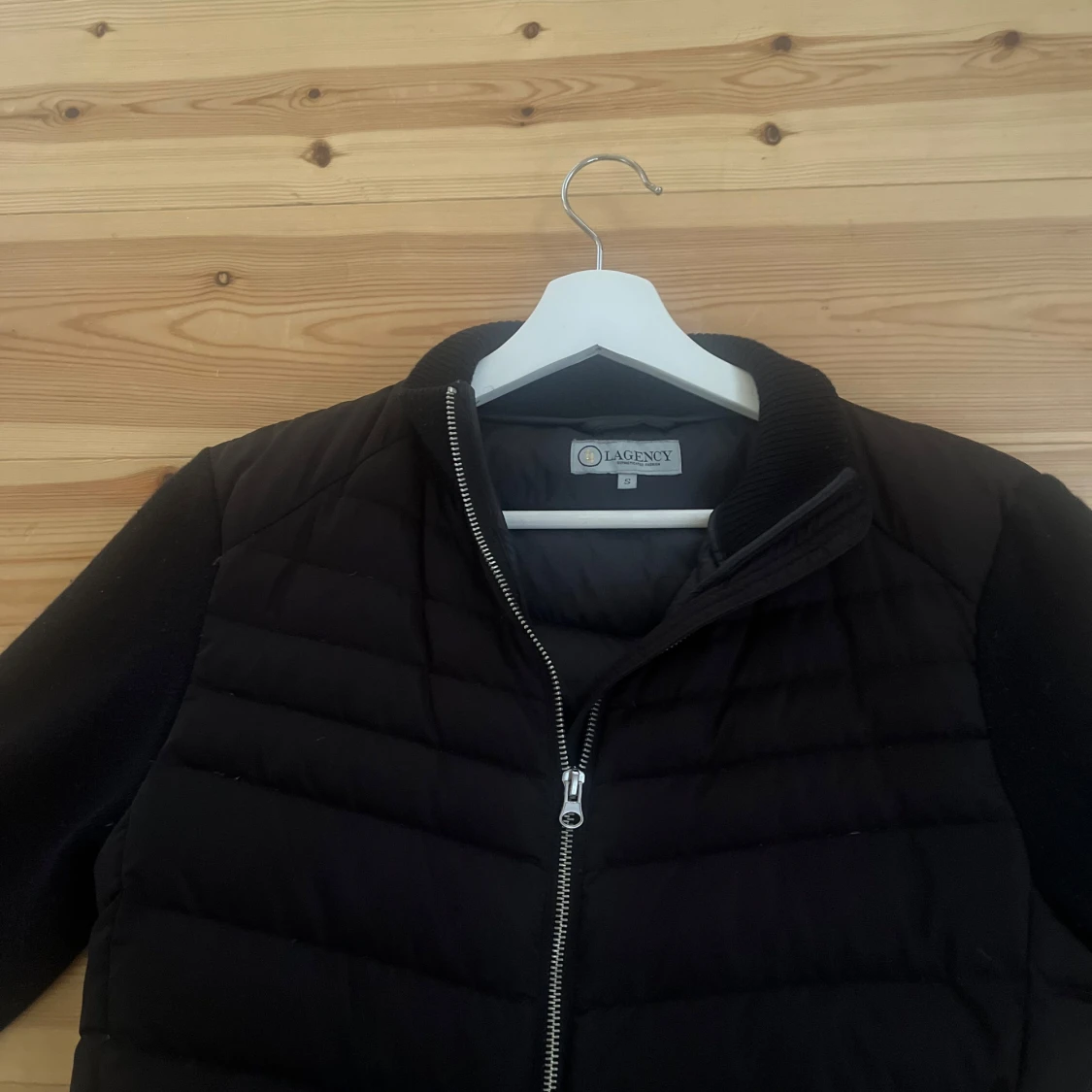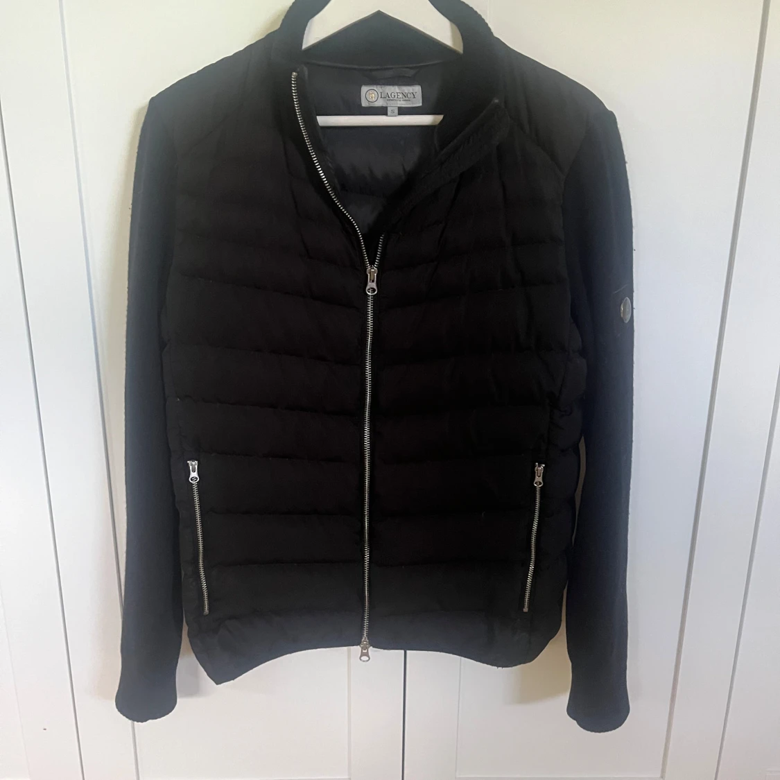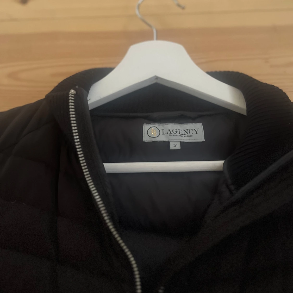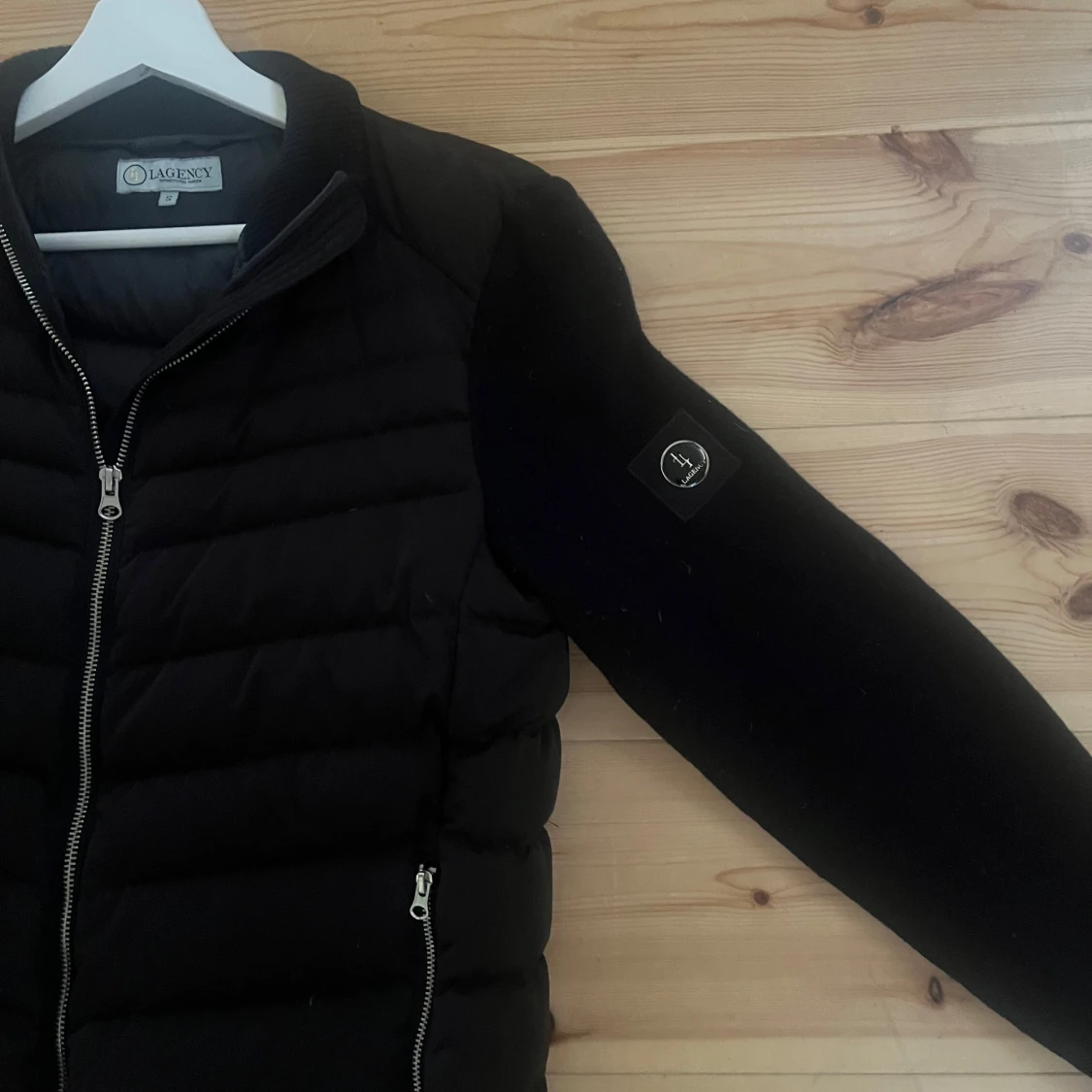 Svart pufferjacka från Lagency med quiltad front och ärmar i mjuk ullmix. Jackan har två dragkedjefickor, hel dragkedja framtill och en stilren patch på ena ärmen. Perfekt för dig som gillar en clean och modern look.