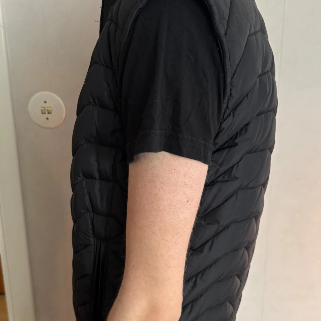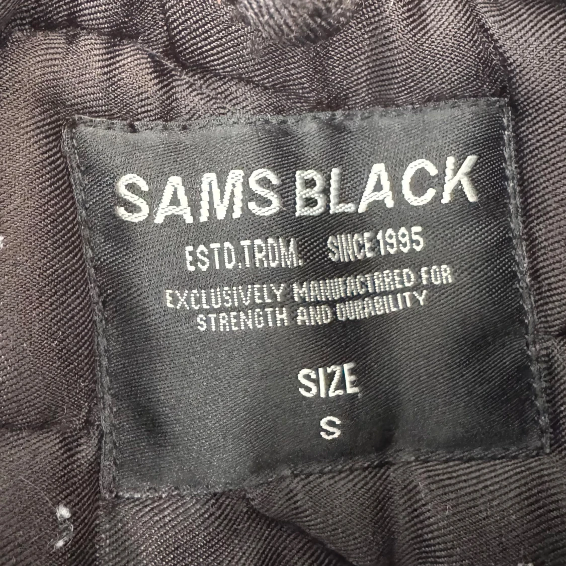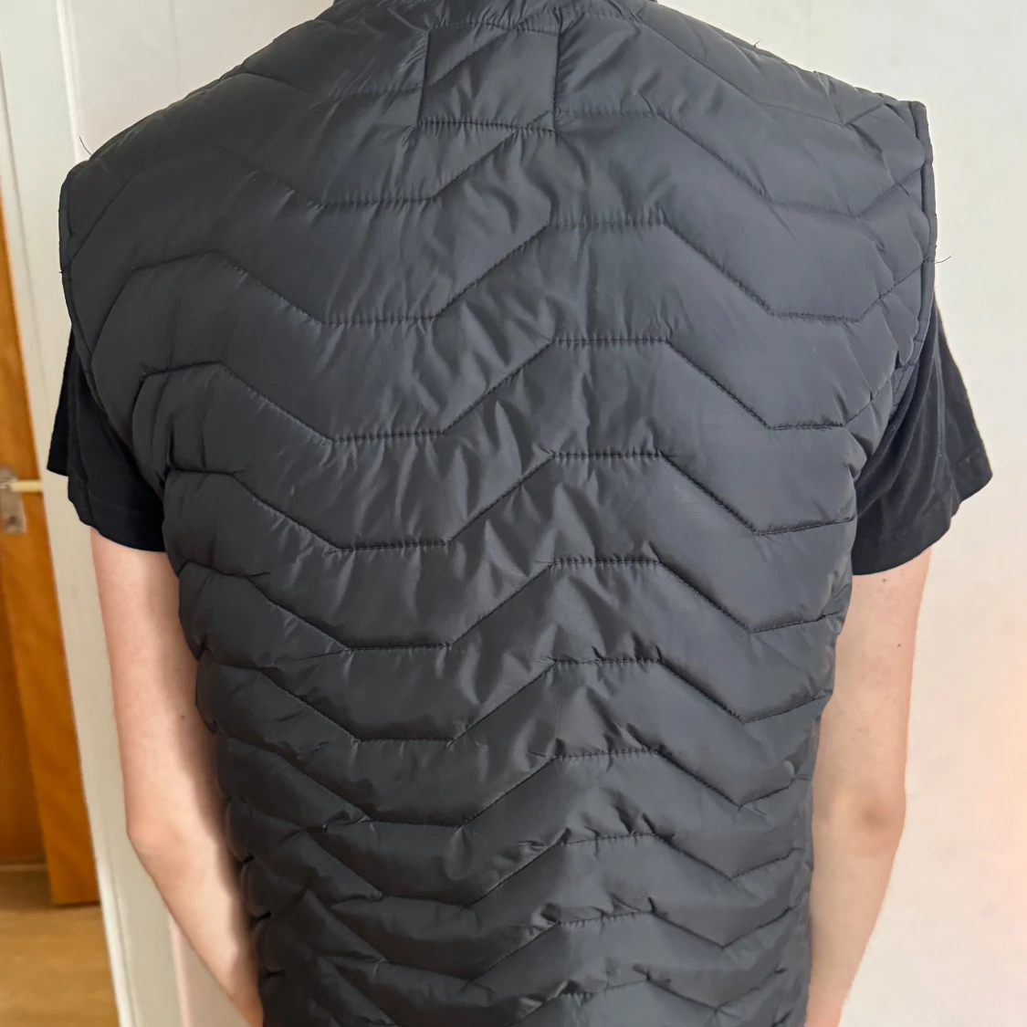 Svart dunväst från SAMS BLACK med quiltat mönster i sicksack, hög krage och dragkedja framtill. Västen har två fickor med dragkedja och en liten logga på bröstet. (Katt finns i hemmet) nypris 500kr (även lite nopprig på insidan men de går att ta bort)