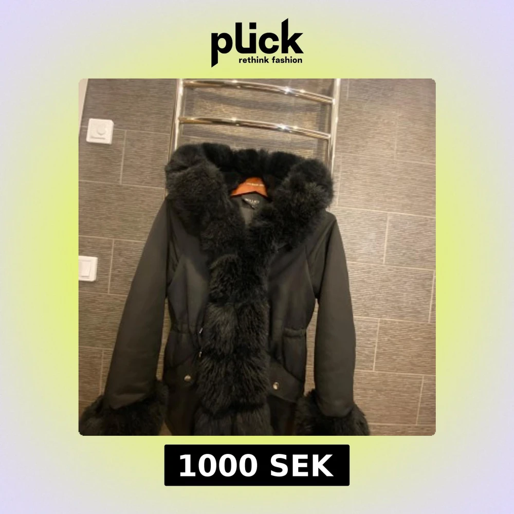 Snygg svart parkajacka från Hollies med lyxiga pälsdetaljer på luva, ärmar och framsida. Jackan är varm och mysig. För referens är jag 170cm lång.