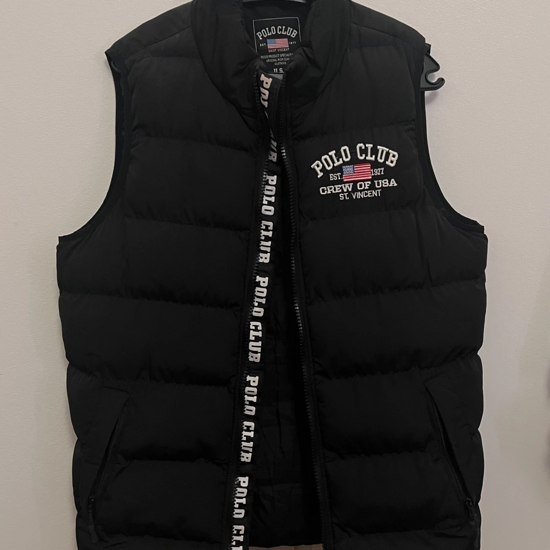 Svart dunväst från Polo Club med broderad logga och text på bröstet. Västen har dragkedja framtill och två fickor på sidorna. Perfekt för lager-på-lager och enkel att matcha med olika outfits.