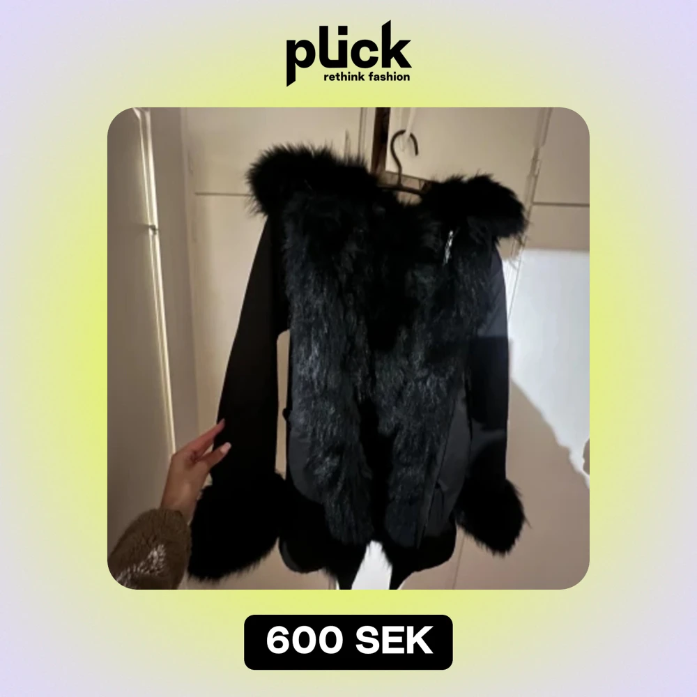En jättefin vinterjacka med svart päls i bra skick. Använd bara några få gånger, säljs då den aldrig kommer till användning. Passar både en S och Xs
