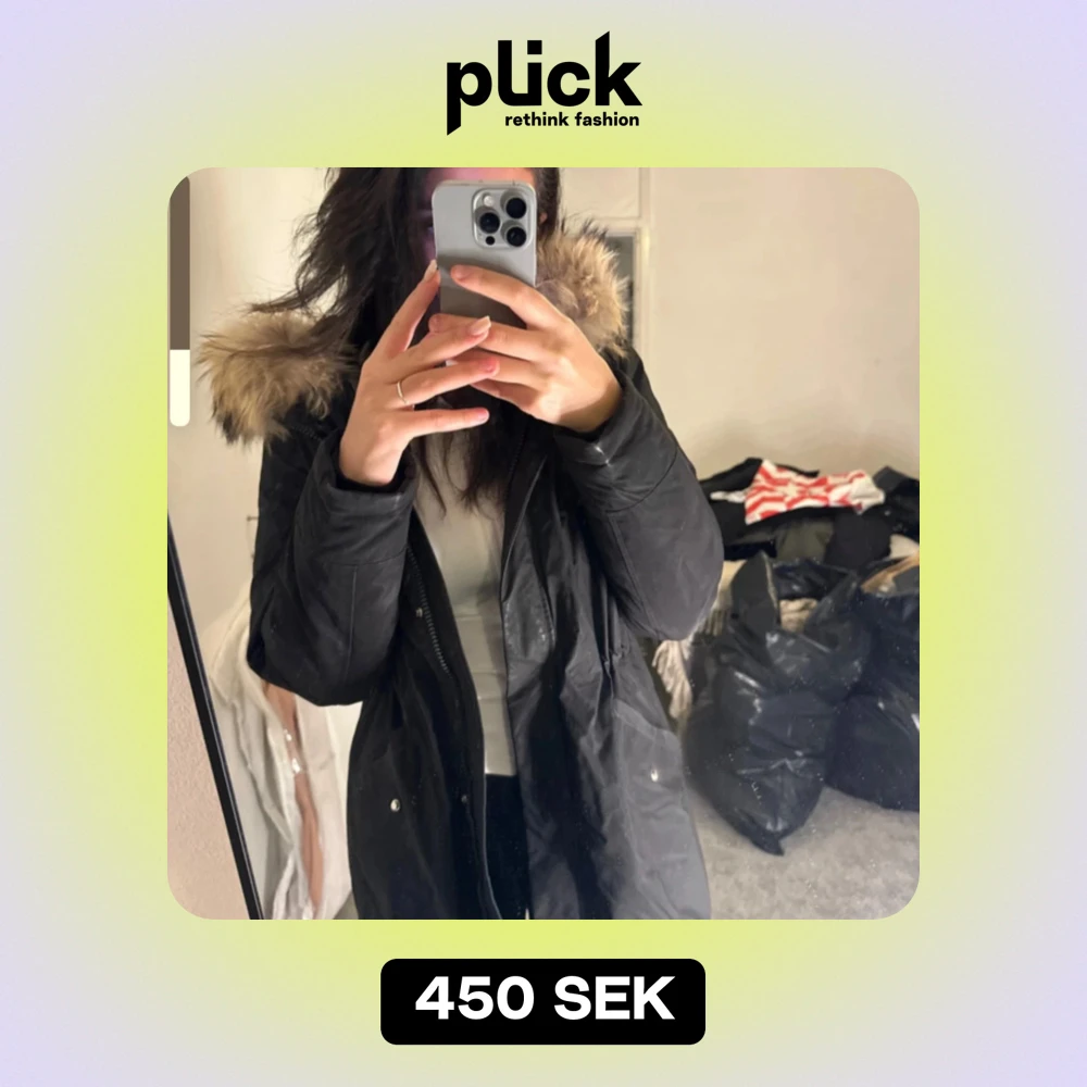 Säljer en svart parkajacka med mysig pälsdetalj på huvan. Perfekt för kalla vinterdagar! Jackan har en dragkedja framtill och långa ärmar. Den är både stilren och praktisk, vilket gör den idealisk för både vardag och festliga tillfällen. Passar perfekt för vintersäsongen!