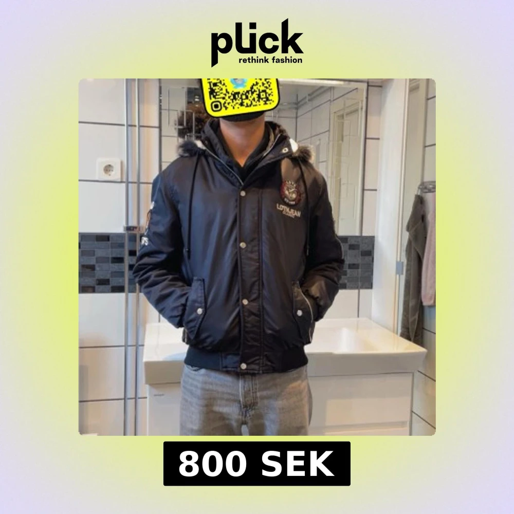 Svart bomberjacka med pälsfodrad huva