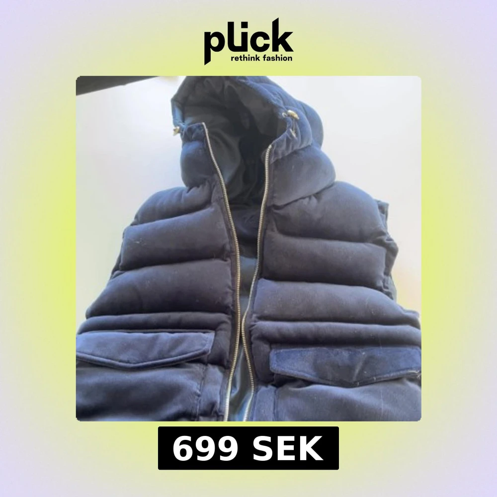 Snygg svart mocka manchester väst med dragkedja och praktiska fickor. Perfekt för kyligare dagar med sin vadderade design och huva för extra värme. Använd 1 gång