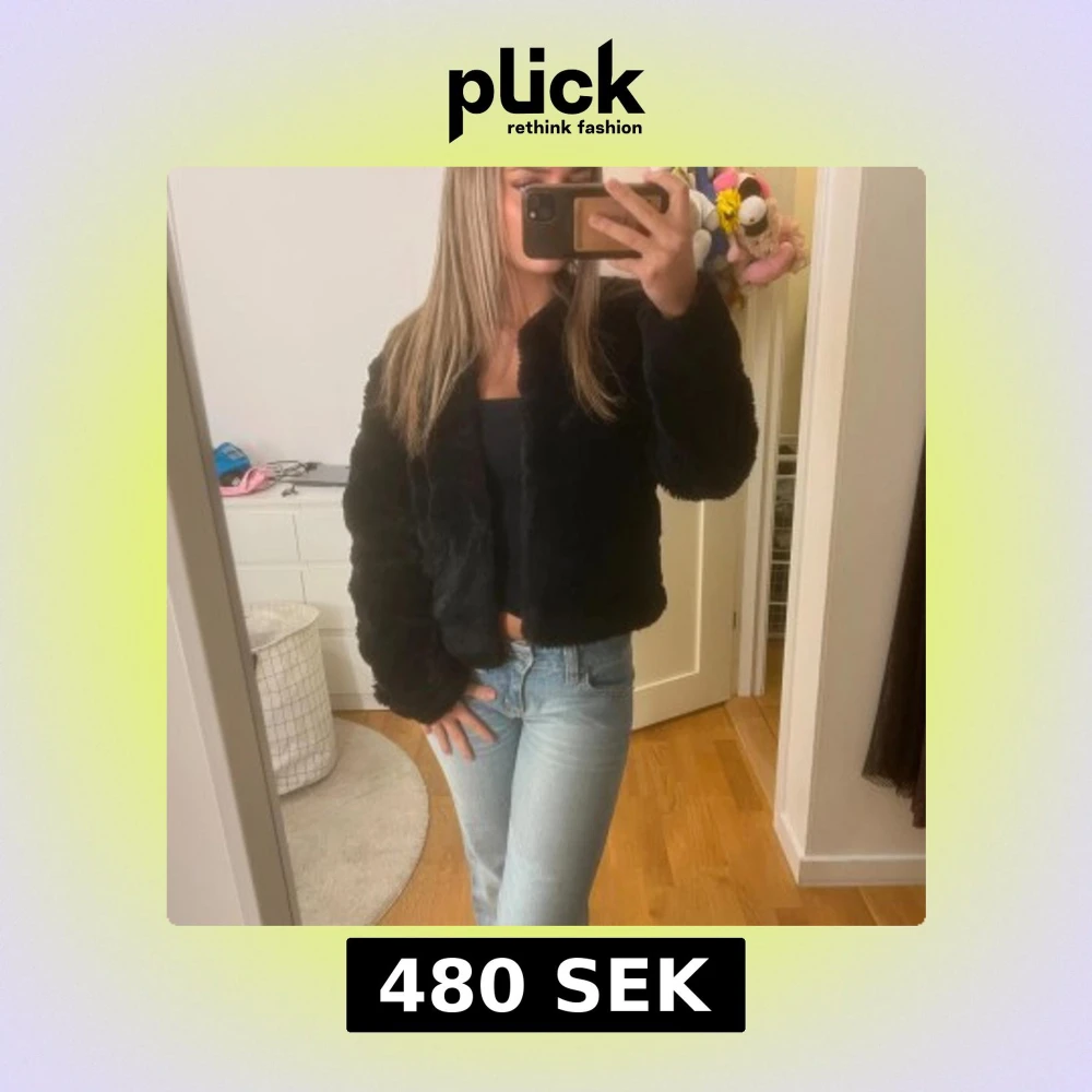 Säljer en svart, fluffig pälsjacka i kortare modell. Jackan har lång ärm och en oversized känsla, perfekt för dig som vill ha en mysig och trendig look. Passar till allt och är superenkel att styla med jeans eller klänning.