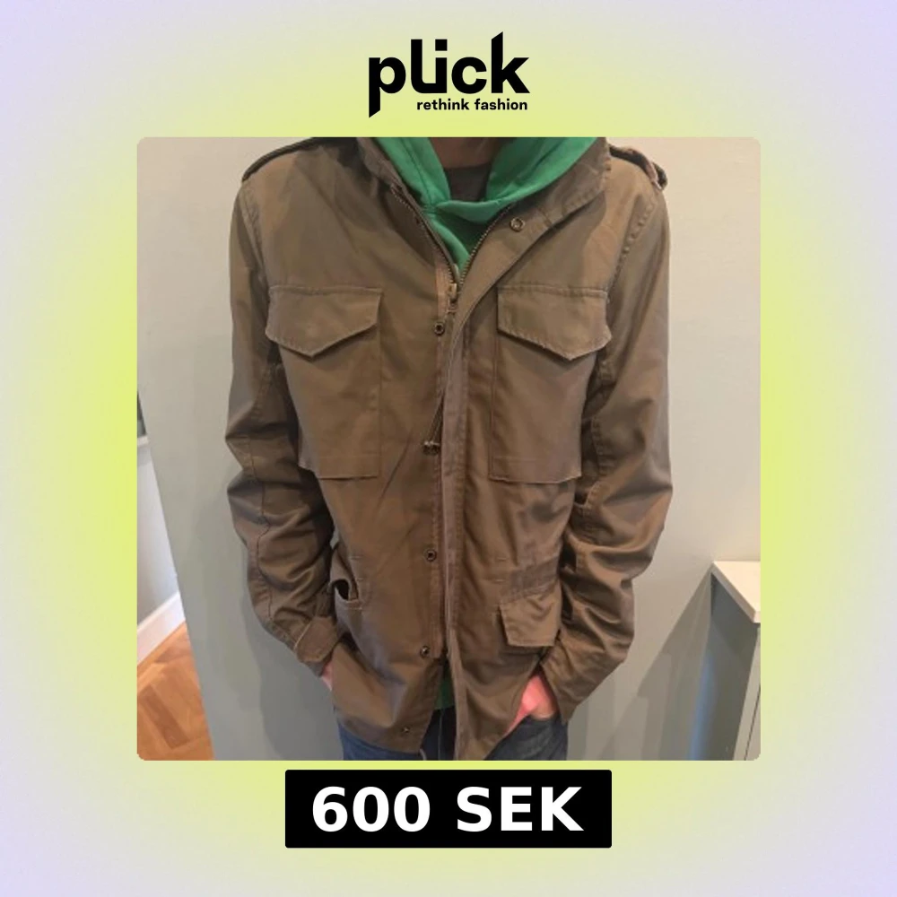 Säljer en olivgrön parkajacka från Brandit med fyra stora fickor framtill, axelklaffar och huva. Jackan har dragkedja och knappar samt quiltat innerfoder som går att ta ur. Perfekt för lager-på-lager.