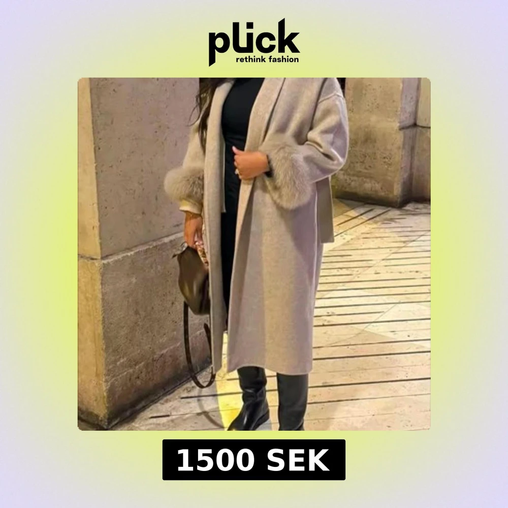Snygg beige kappa med fluffiga pälsdetaljer vid ärmsluten och knytbälte i midjan. Modellen är lång och har en loose passform med bred krage. Perfekt för dig som vill ha en stilren och lyxig look under höst och vinter.