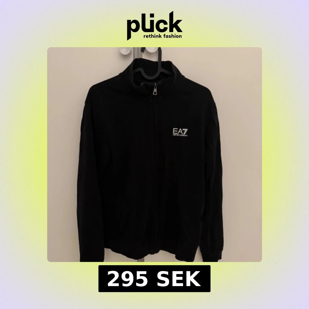 Svart jacka från EA7 Emporio Armani med hel dragkedja framtill och vit logga på bröstet. Hög krage och diskreta vita ränder på ryggen. Tillverkad i mjukt material, perfekt för en clean och sportig look.