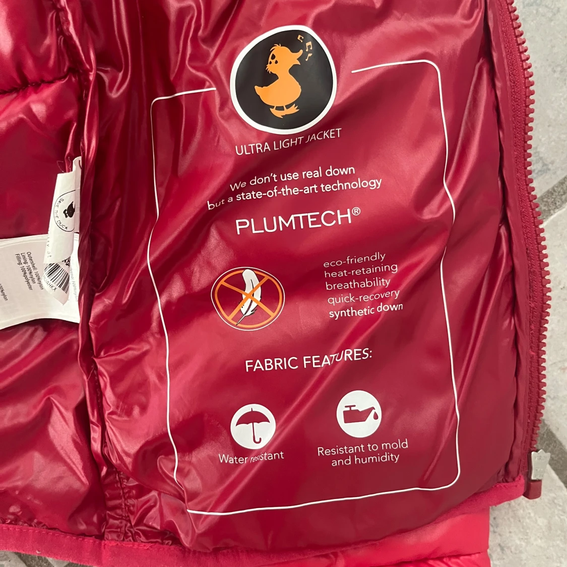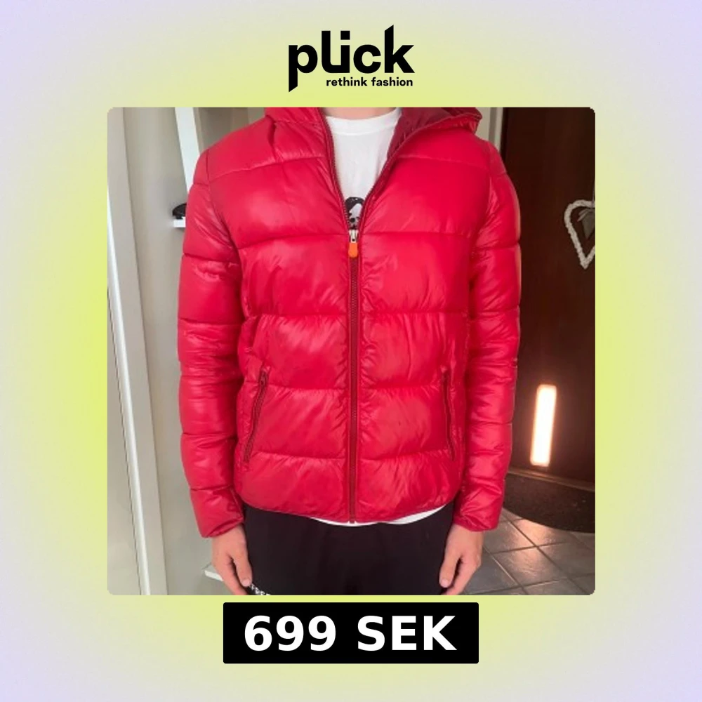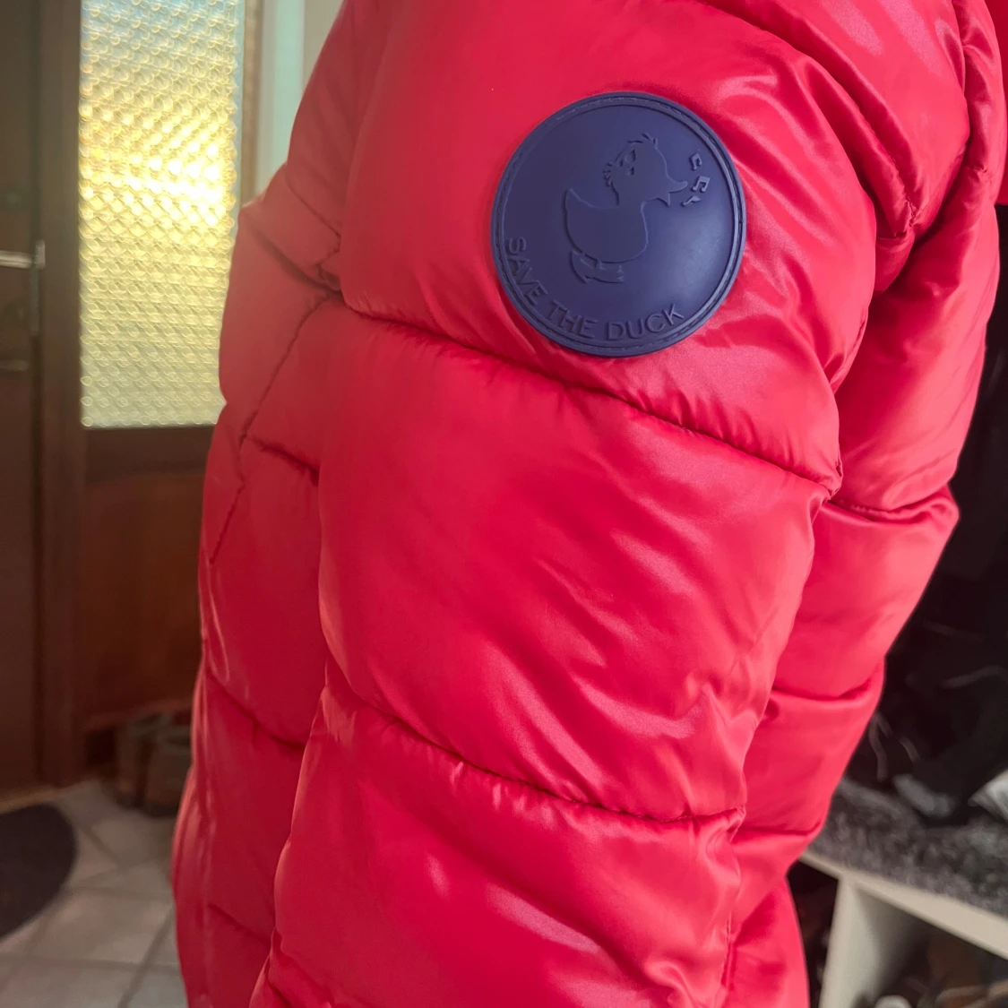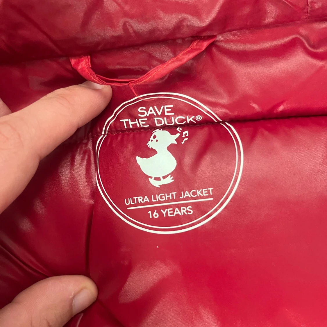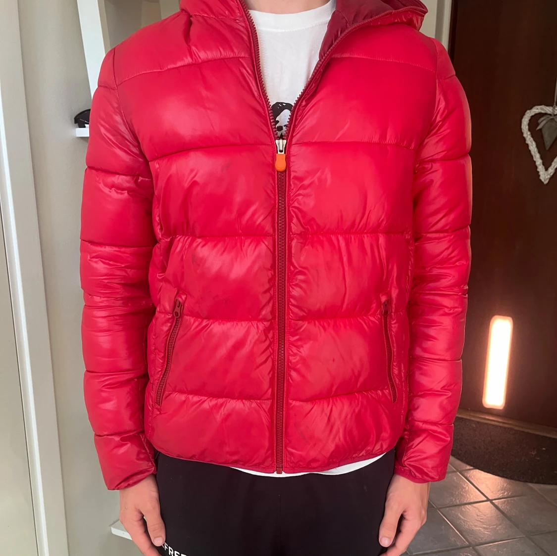 Säljer en röd pufferjacka från Save The Duck med huva och dragkedja. Jackan är tillverkad i vattenavvisande syntetmaterial med Plumtech-fyllning, helt animal free. Har Save The Duck-logga på ärmen och två sidofickor med dragkedja. Perfekt för kalla dagar. Storleken är 16 years vilket motsvarar S.
