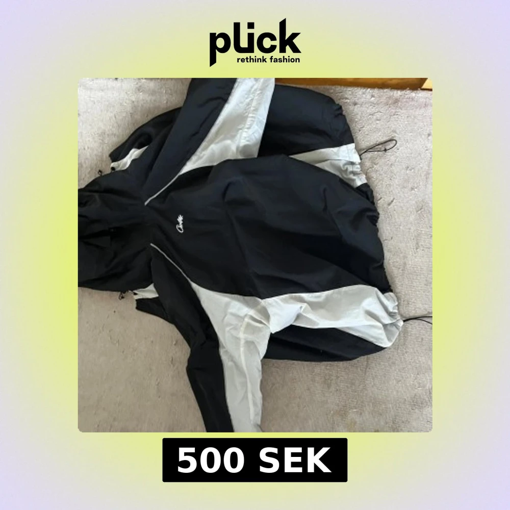 Säljer en stilren svart och vit vindjacka från Cortez. Jackan har en justerbar huva och dragkedja framtill. Perfekt för blåsiga dagar och har en sportig look. Passar bra för utomhusaktiviteter.
