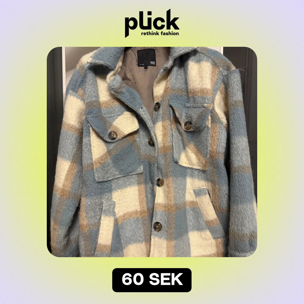 Säljer en supermysig teddyjacka i rutig design med blå, beige och vita toner. Jackan har långa ärmar och knappar framtill. Perfekt för höst och vinter när du vill hålla dig varm och stilren. Två praktiska fickor med lock på bröstet. Passar både till vardags och lite mer avslappnade tillfällen.