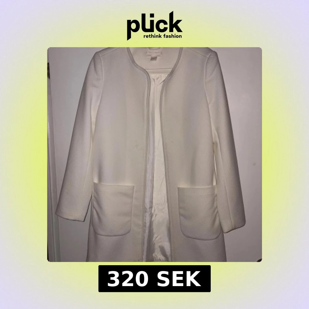 Snygg vit kappa med strukturerat tyg och raka linjer. Jackan har två stora fickor framtill och är öppen utan knäppning. Perfekt för dig som gillar stilrena och minimalistiska plagg. Lätt fodrad och med rundad halsringning.