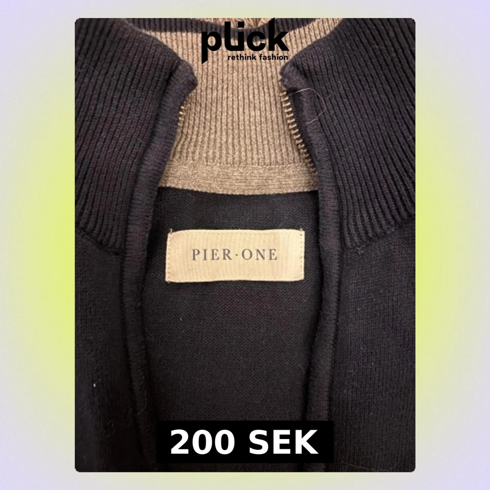Svart cardigan jacka från Pier One med ribbad krage och muddar. Jackan har dragkedja framtill, två fickor och en kontrastfärgad insida vid halsen i beige. Perfekt för dig som gillar stilren och enkel design.
