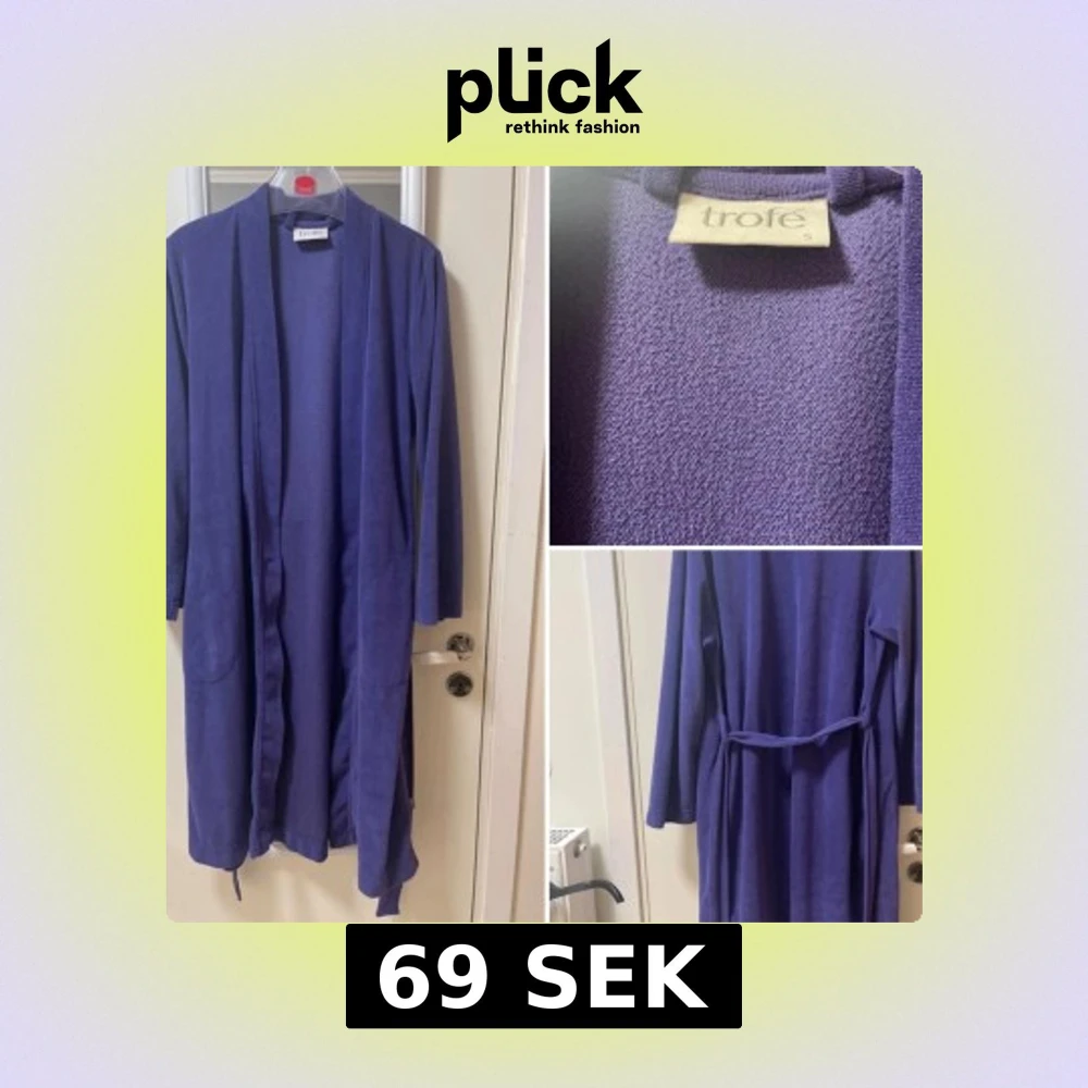 Säljer en lila cardigan jacka från Trofé med långa ärmar och knytband i midjan. Jackan har två fickor framtill och är tillverkad i mjukt stickat material. Perfekt för att slänga över en outfit när du vill ha något bekvämt och snyggt.