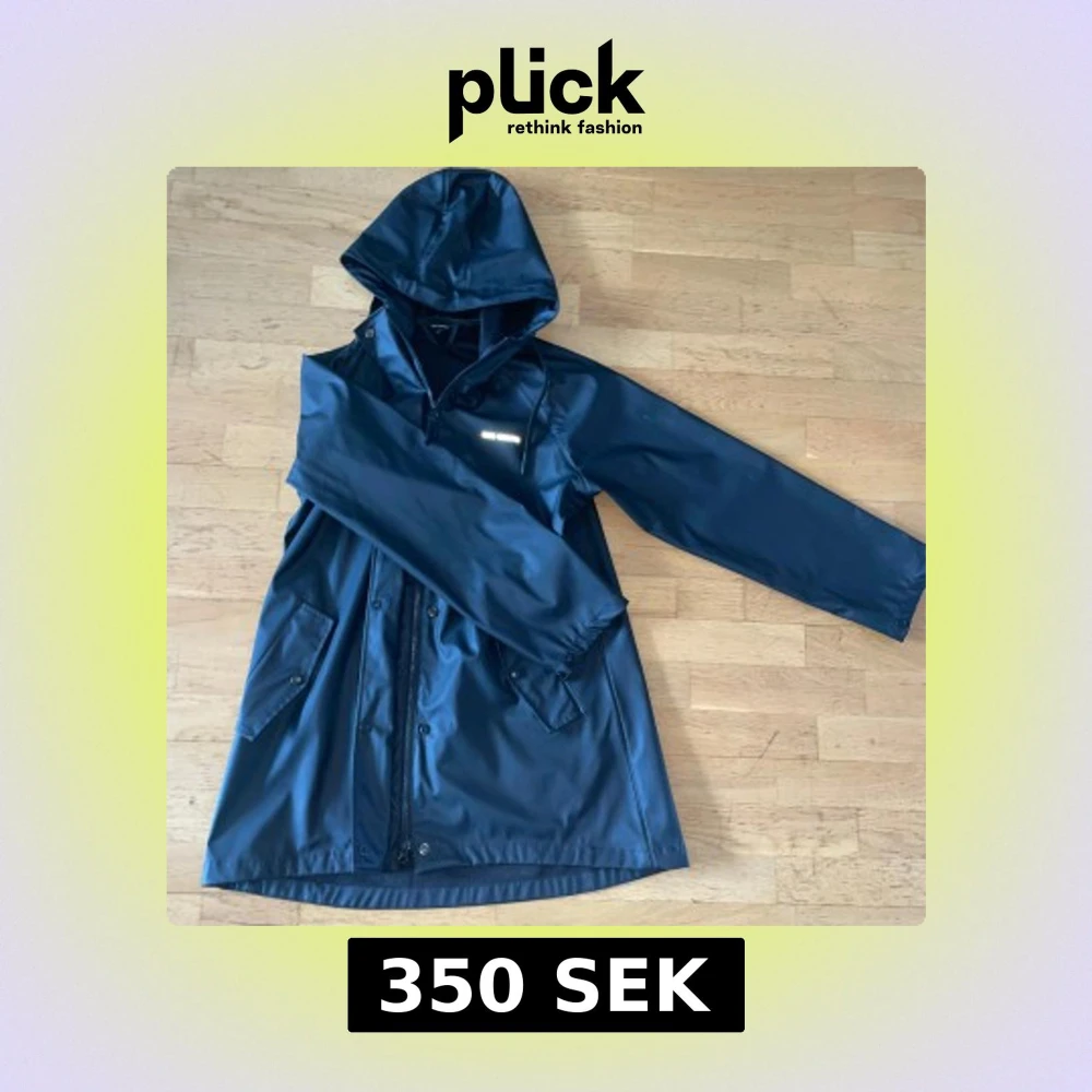 Snygg mörkblå regnjacka från True North i storlek S. Jackan har huva, långa ärmar, två fickor med lock och både dragkedja och knappar framtill. Perfekt för blöta dagar och har en clean, stilren look som funkar till många outfits. Pris kan diskuteras. 👍