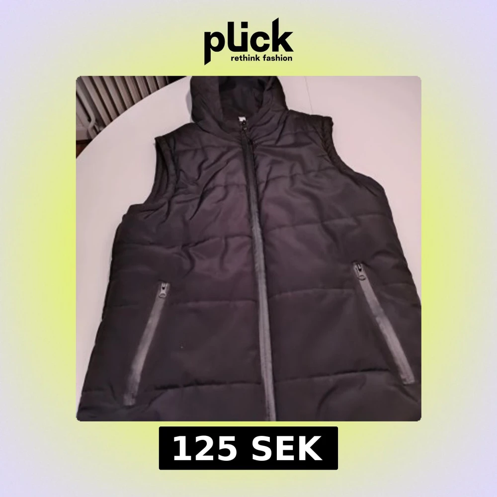 Svart dunväst med huva i storlek: S. Västen är använd ett fåtal gånger och är i mycket bra skick.