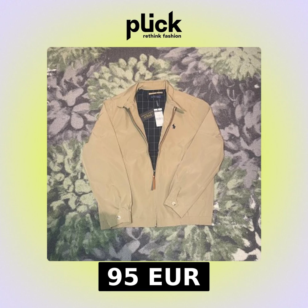 Snygg beige vindjacka från Polo Ralph Lauren med klassisk krage och dragkedja framtill. Jackan har mörkblått foder med vitt rutmönster och ikonisk broderad logga på bröstet. Tillverkad i bomull och polyester, perfekt för vår och höst. Storlek S