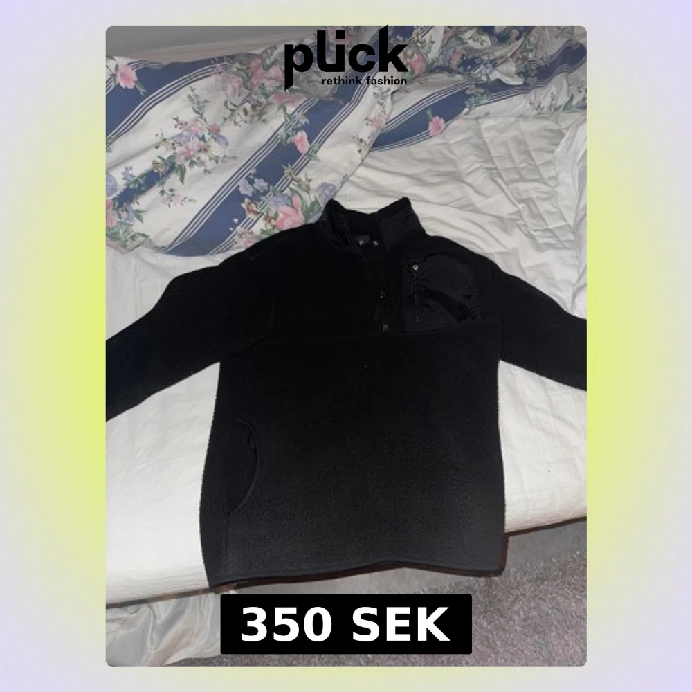 Svart fleecejacka med halv dragkedja och en praktisk ficka med dragkedja på bröstet. Jackan har lång ärm och en enkel, clean design som passar perfekt för kyliga dagar. Mjuk och skön fleece som håller dig varm och bekväm. Storlek S och nypris 600