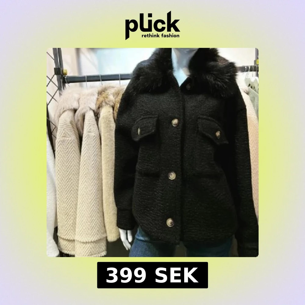 Säljer en svart teddykappa med fluffig fuskpäls på kragen och stora guldfärgade knappar framtill. Jackan har två rejäla fickor med lock och en loose passform som ger en chill vibe. Perfekt för dig som vill ha en mysig och snygg jacka till hösten och vintern.