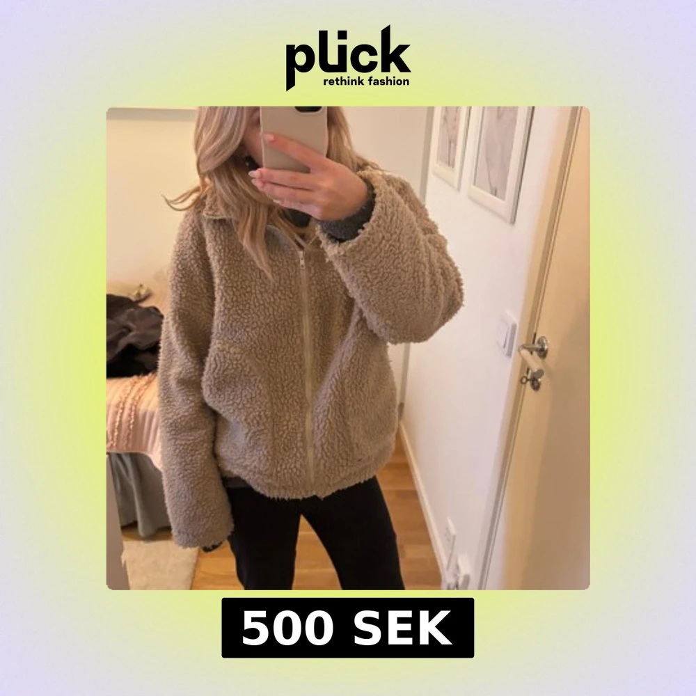Mysig beige teddyjacka. Perfekt för kyliga dagar med sin fluffiga och varma design. Väldigt varm då den är fodrad🤍🤎
