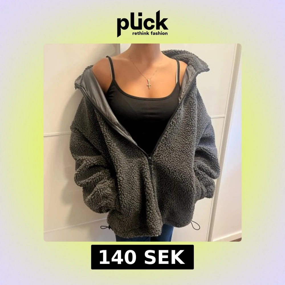 Mysig och oversized grå teddyjacka från Dazy, Shein, med dragkedja framtill och hög krage. Jackan har en fluffig, fårullsliknande yta och två sidofickor. Perfekt för kalla dagar när du vill vara både varm och stilren.