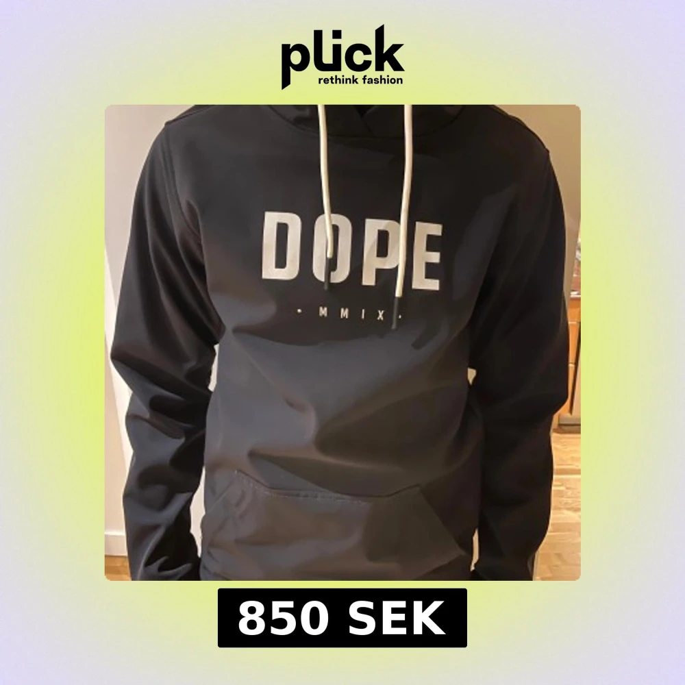 Snygg svart jacka från Dope med vit text på framsidan. Den har en justerbar huva med vita snören och en praktisk magficka. Perfekt för en avslappnad stil i skidbacken! Hör av er vid intresse eller frågor!