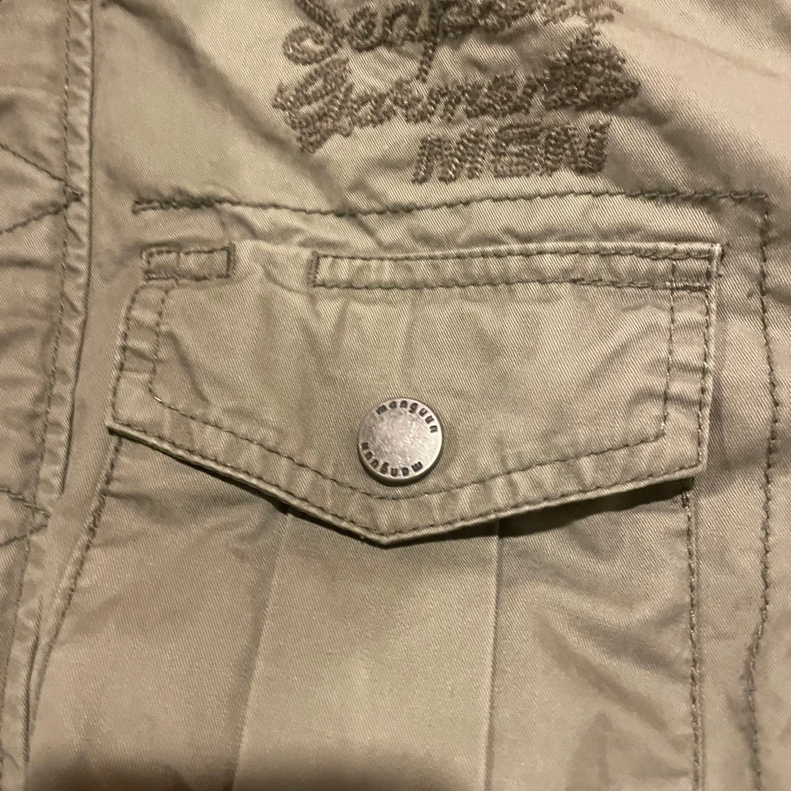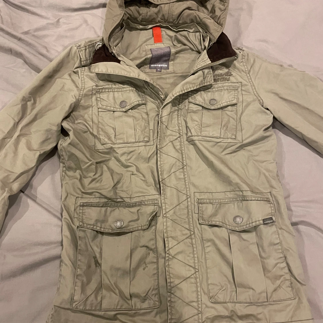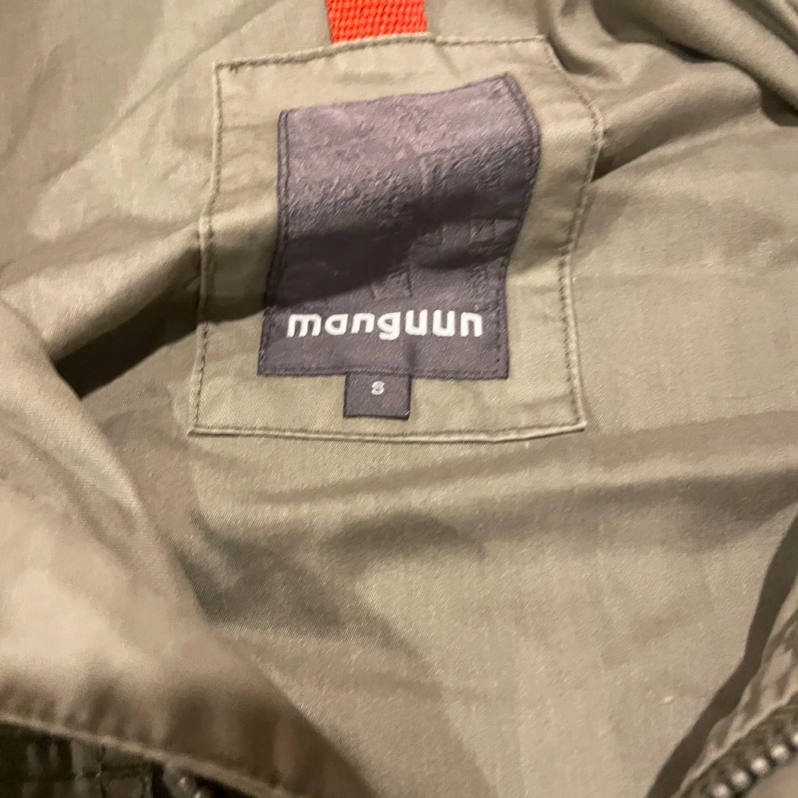 Säljer en grön jacka från manguun med av tagningsbar luva. Strlk S. Bra skick utan skador. Pris 549