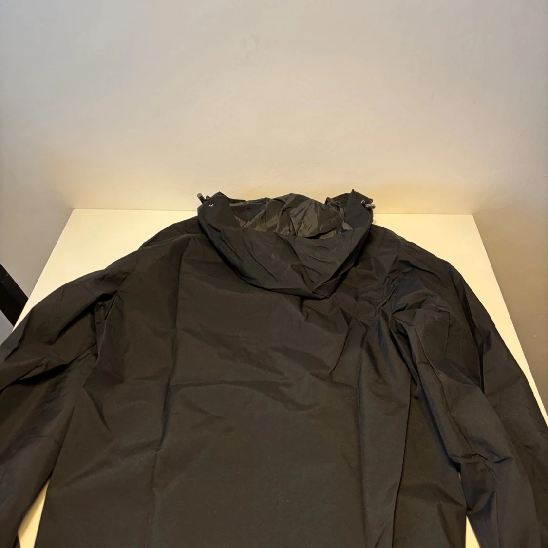 Säljer en svart vindjacka med huva och dragkedja framtill. Jackan har en clean look, elastiska muddar vid ärmsluten och praktiska fickor med dragkedja. Perfekt för blåsiga dagar och enkel att matcha med allt. Snygg och funktionell för dig som gillar stilren design. Helt ny. Jag är 175 o väger 75